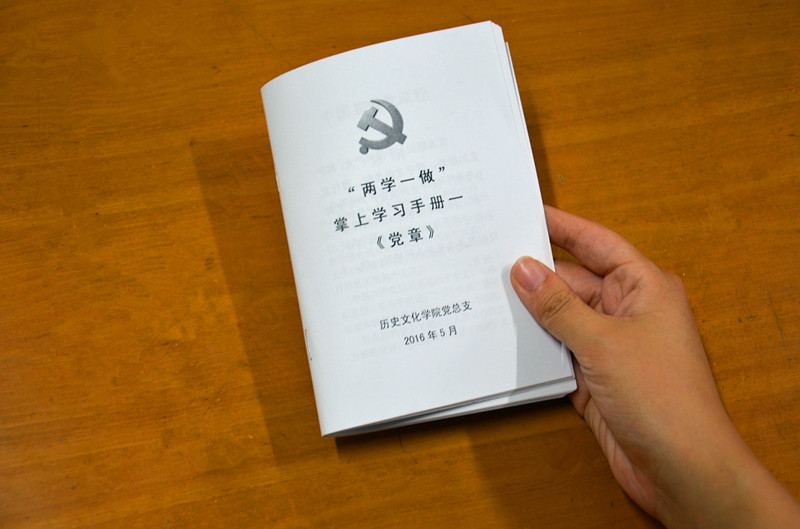 第二阶段王建阳带领全体党员学习了党章。了方便党员随时学习党章、掌握学习计划,支委专门设计制作了《快猫视频 “两学一做”掌上学习手册》,手册内容包括党章、学习计划、我校发展党员流程等材料。