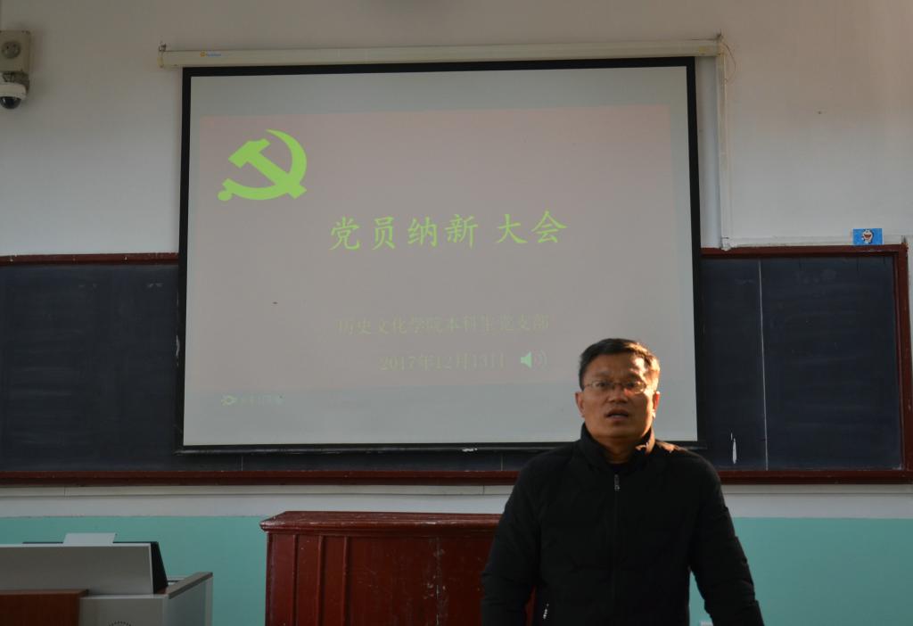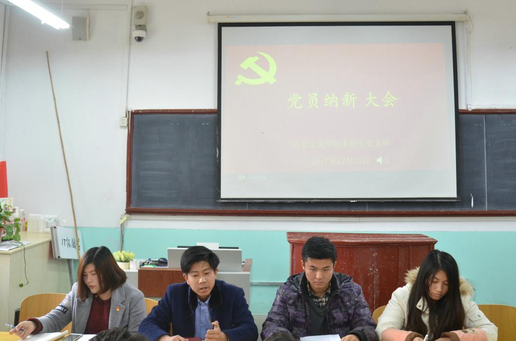 12月13日下午,快猫视频 本科生党支部在文史楼309召开党员纳新大会。会议由支部副书记李成林主持,党委副书记王慕东出席本次会议。