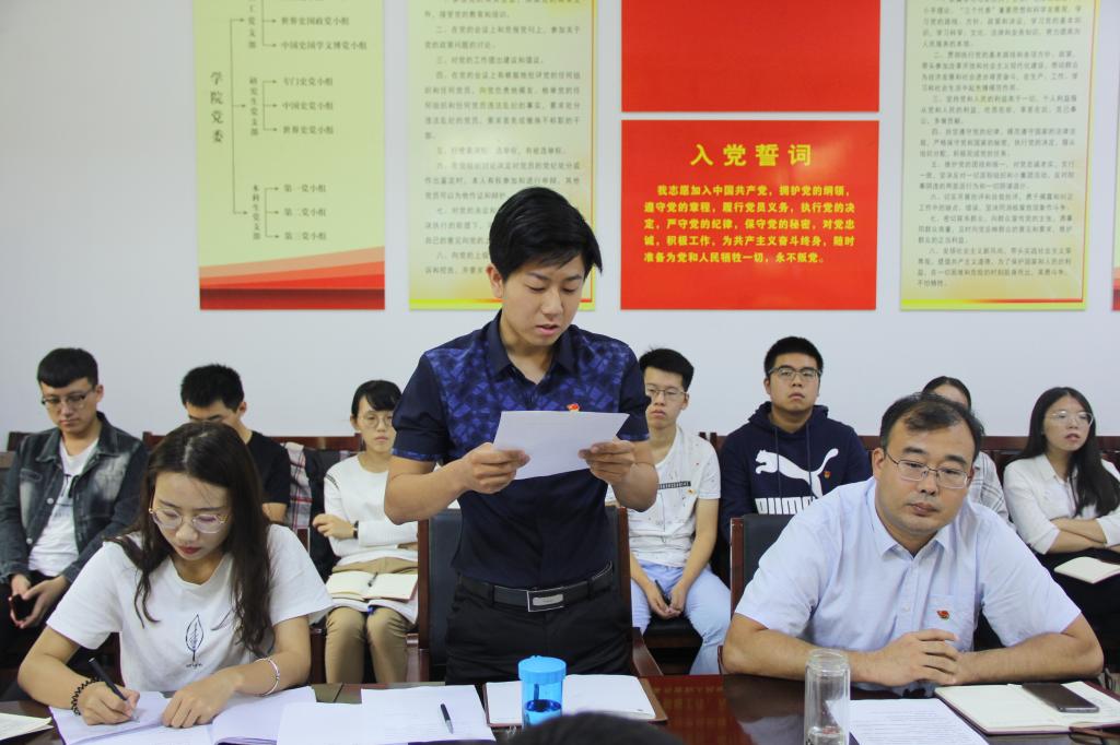 9月18日上午,快猫视频 本科生党支部2018年党员转正大会在文史楼二楼会议室举行,会议由本科生党支部书记王建阳主持。 会议严格按照党员转正流程进行,经过无记名投票的方式,一致同意王玖、付盛阳、时红凯、卢立志、贺于真五名预备党员转为正式党员。王建阳对转正的党员们表示祝贺,并希望大家不忘初心,牢记党员身份,发挥党员先锋模范带头作用。 五位新晋正式党员表示:今后会牢记初心,不忘使命,以良好的精神状态,投入到学习工作中去。