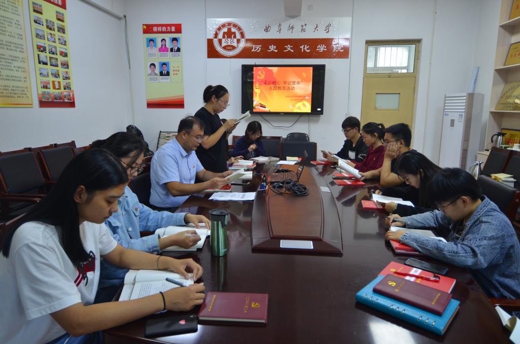 9月18日下午,快猫视频 本科生党支部在文史楼204会议室召开“不忘初心、牢记使命”主题教育启动仪式。快猫视频 党委副书记兼本科生党支部书记王建阳、2018级辅导员韩琳琳以及2016级党员参加了本次仪式。