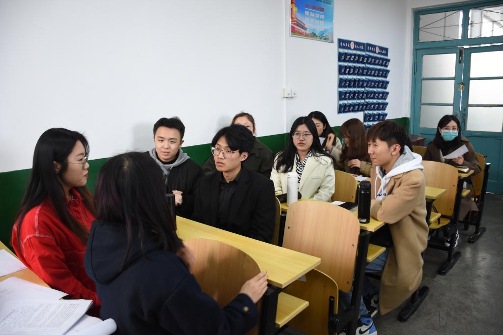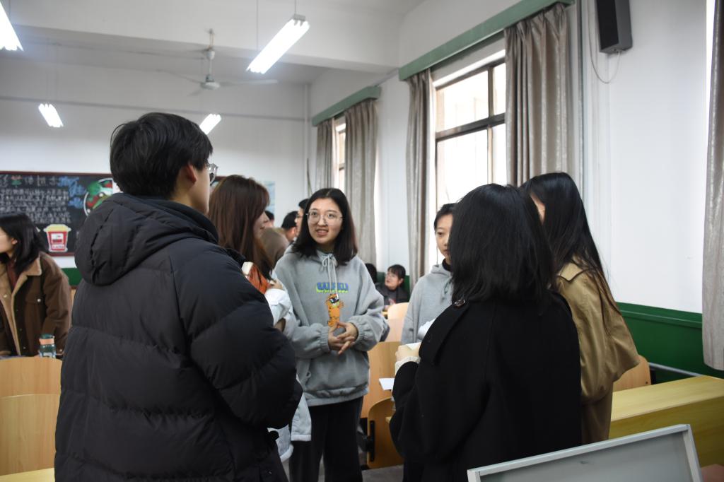 3月12日下午,快猫视频 本科生党支部在文史楼405教室开展“聚焦两会”主题党日活动。活动由党团事务部部长苏辰阳主持,本科生党支部书记蔺琦琦、学院辅导员刘贤贤、闫浩以及本科生党支部全体党员参加活动。