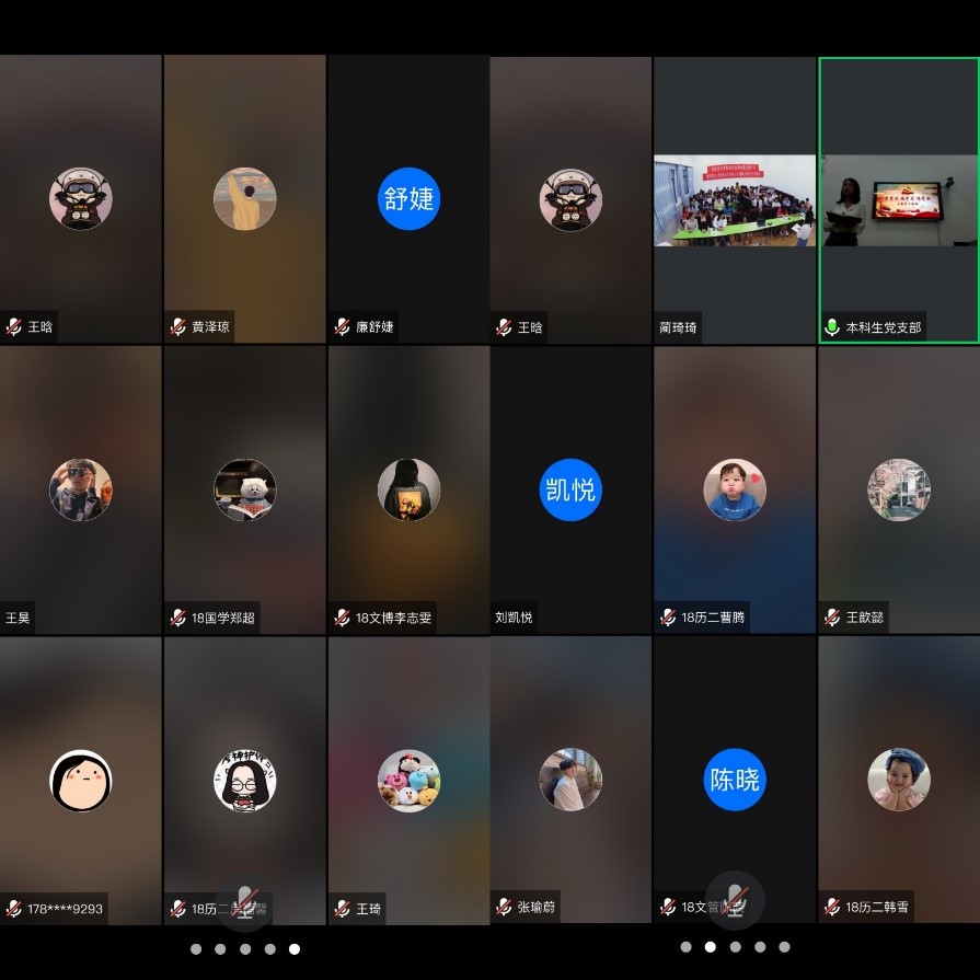 6月3日晚上,快猫视频 本科生党支部采用线上与线下相结合的方式,在文史楼505教室和腾讯会议举行“学党史,诵党史,唱党歌”六月份主题党日活动。活动由本科生党支部书记蔺琦琦主持,2017级辅导员刘贤贤以及本科生党支部全体党员参加。