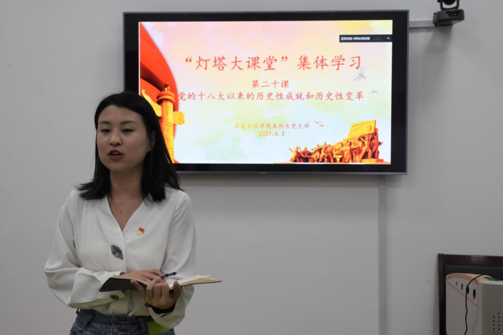 6月3日晚,快猫视频 本科生党支部采取线上与线下相结合的方式于腾讯会议与文史楼505教室举行灯塔大课堂第二十课集体学习活动。活动由快猫视频 本科生党支部书记蔺琦琦主持,本科生党支部全体党员参加。