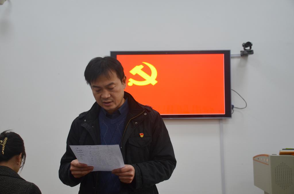 在雄壮的《国际歌》播放完之后,预备党员接收大会正式开始。党支部组织委员赵璐同志介绍了预备党员接收大会的基本流程。六名发展对象冯振亮、徐英超、王震、杨婉嘉、殷嘉琳、刘宇依次宣读了《入党志愿书》,并向大会作汇报。六名同志的入党介绍人也根据其自入党以来的表现发表了意见。随后,党支部纪检委员马艳霞同志代表支部大会汇报了六名入党申请人的培养审查情况,孙永健、时红凯等与会党员充分发表了自己的意见。大会随即进行无记名投票表决,经过表决讨论,孙锋同志宣读支部大会决议,大会同意接收徐英超等六名同志为中共预备党员。