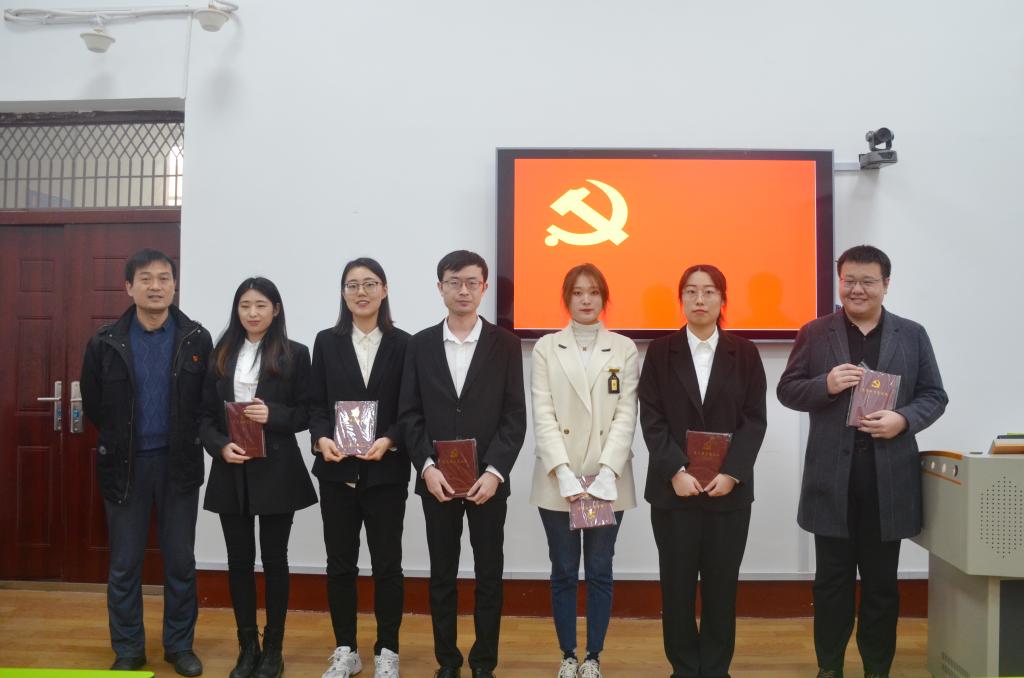 最后,孙锋同志向六位同志颁发了党徽和党员学习笔记本,并作了总结性发言。一方面祝贺六名同志通过组织考验,成为党组织的一份子;另一方面也表达了对预备党员和入党积极分子的期冀,希望他们能够始终以党员的高标准来要求自己,不断学习,无私奉献。