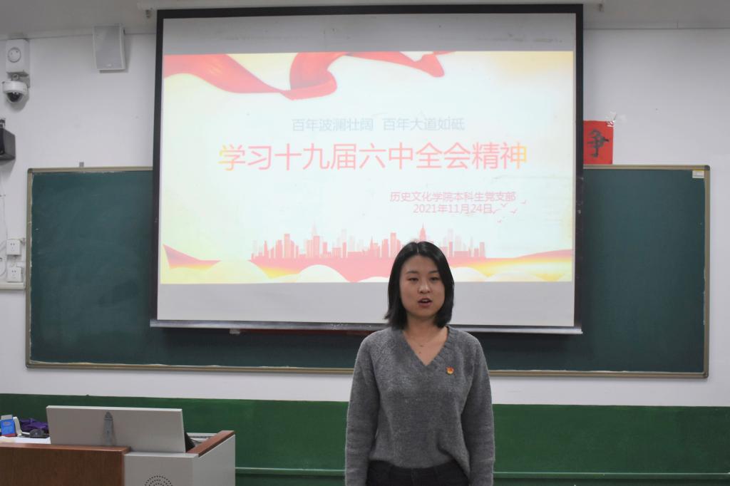 11月24日晚上,快猫视频 本科生党支部在文史楼102教室举行十一月份主题党日活动。活动由本科生党支部书记蔺琦琦同志主持,2018级刘家宇主讲,本科生党支部全体党员参加。
