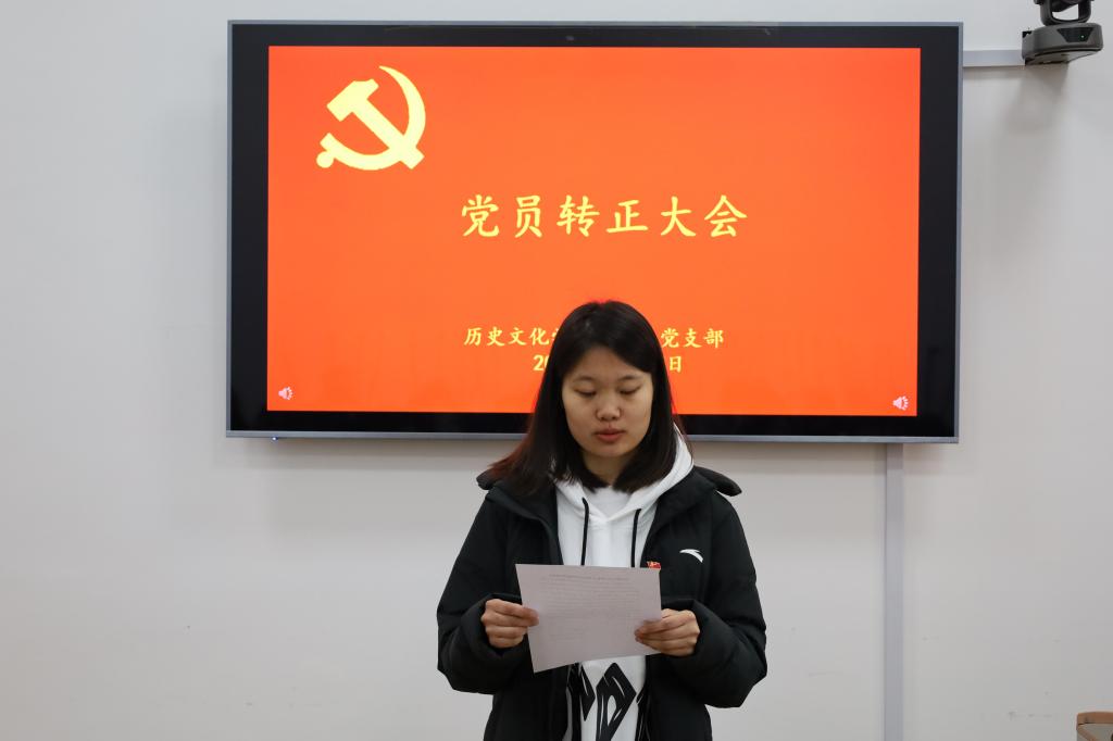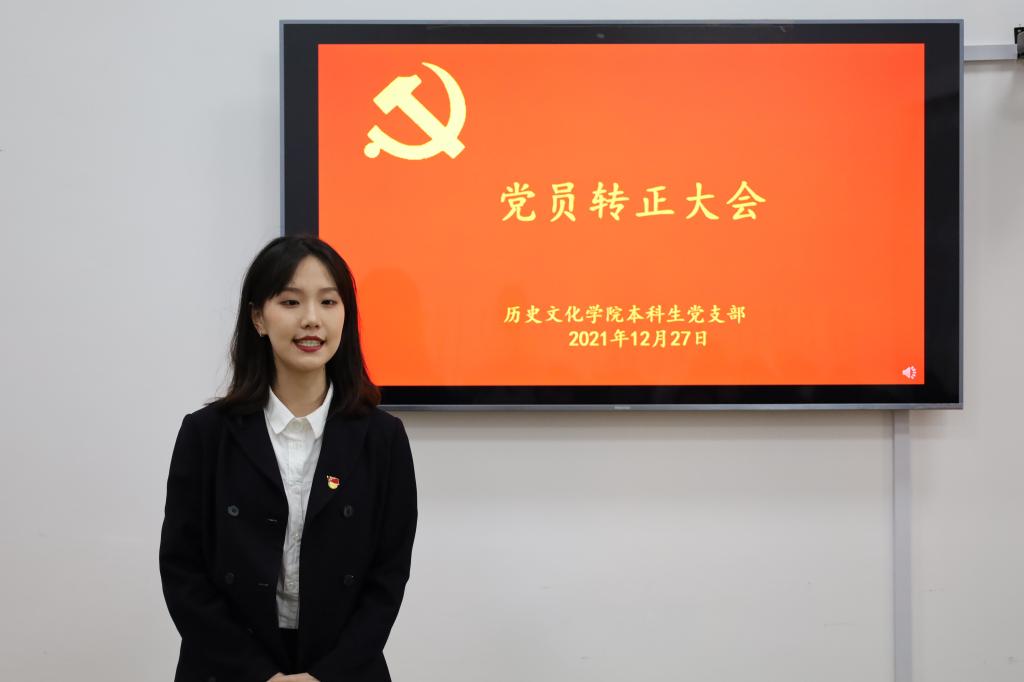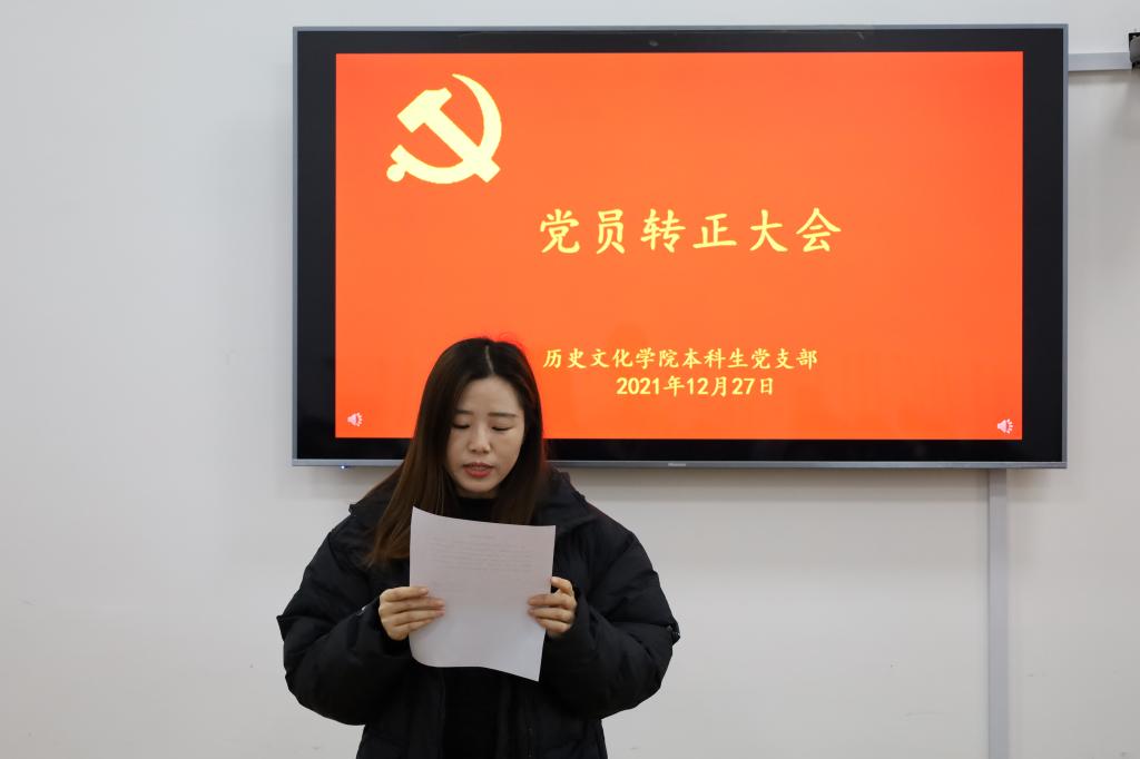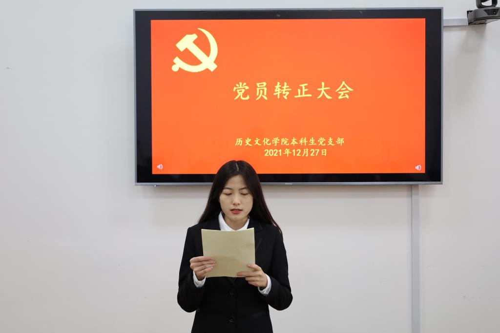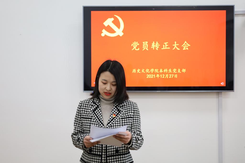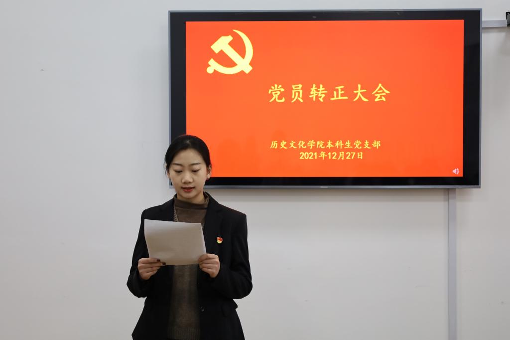 2021年12月27日下午,快猫视频 本科生党支部在文史楼505教室召开了党员转正大会,讨论了吴元浩等14位预备党员按期转为中共正式党员的事宜。会议由本科生党支部副书记蔺琦琦主持,本科生党支部全体党员参加。