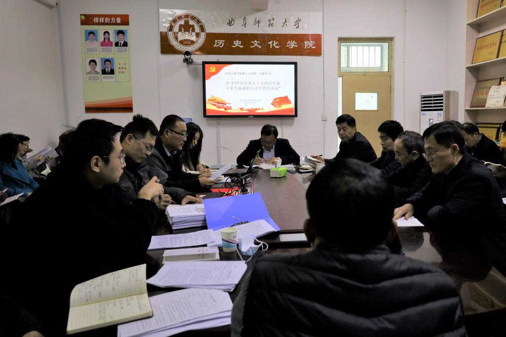 3月2日,快猫视频 教职工党支部在文史楼二楼会议室召开第一议题学习会议,传达学习了中共中央关于党的百年奋斗重大成就和历史经验的决议。学院教职工党支部全体党员参加会议,会议由党支部副书记骆明同志主持。