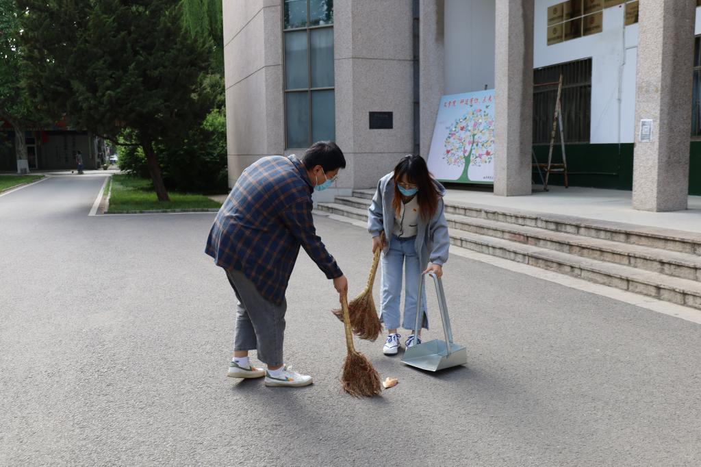 全体党员同志打扫自习室和系楼周围卫生,擦门窗、扫地、拖地、清理落叶,大家干劲十足,尽情展现“史院先锋”的榜样作用。
