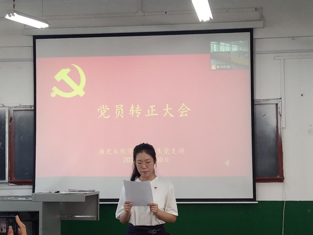 2022年5月30日,快猫视频 本科生党支部在文史楼411教室召开党员转正大会,讨论葛沈荷等35位中共预备党员转为中共党员的事宜。会议由本科生党支部副书记蔺琦琦主持,本科生党支部全体党员参加。本次会议通过了葛沈荷等35位预备党员转为正式党员的决议。