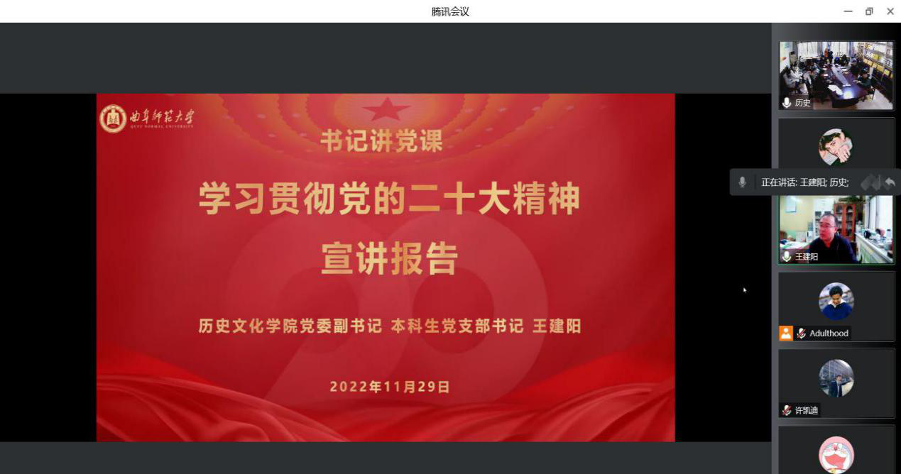 2022年11月29日下午,快猫视频 本科生党支部开展“书记讲党课”活动,本次活动采取线上线下相结合的方式,线下活动在文史楼204会举行,线上活动则以腾讯会议的形式进行。快猫视频 本科生党支部全体党员参加。