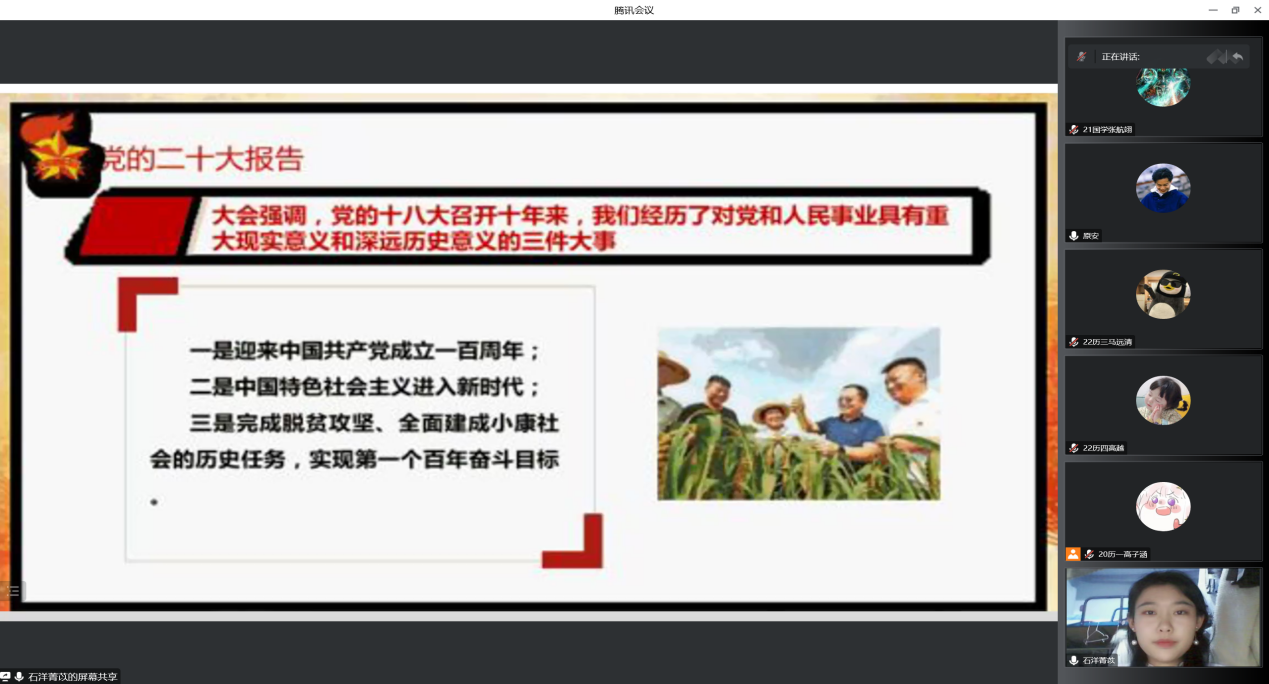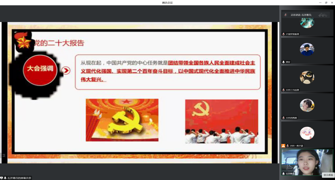 2022年12月4日晚,快猫视频 本科生党支部开展“师哥师姐讲党课”活动,本次活动以腾讯会议的形式进行。快猫视频 本科生党支部全体党员参加。
