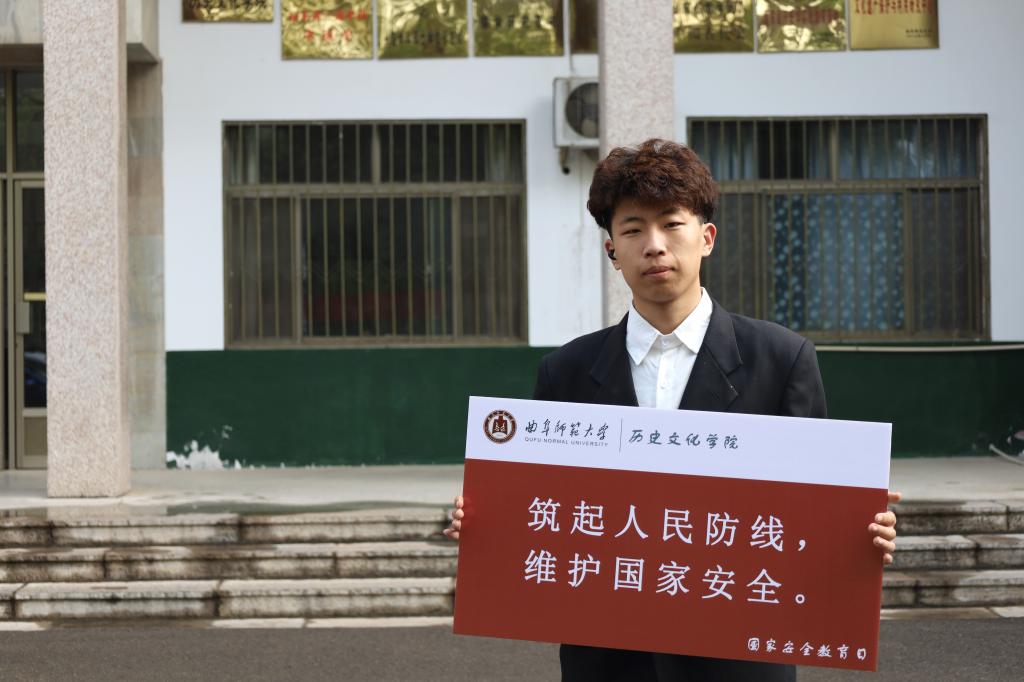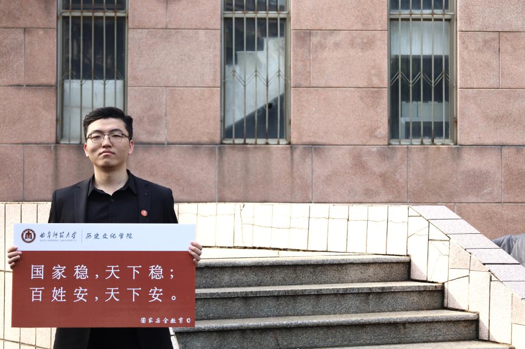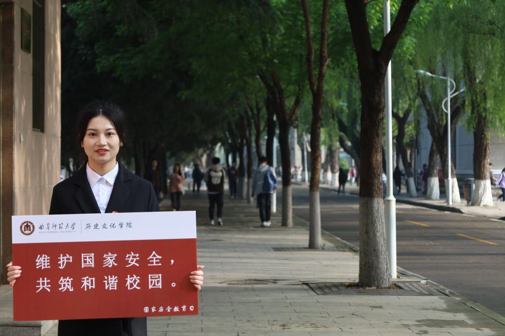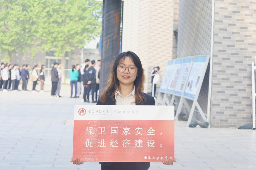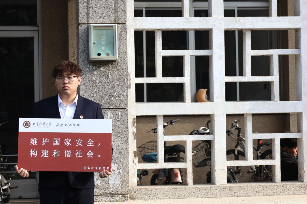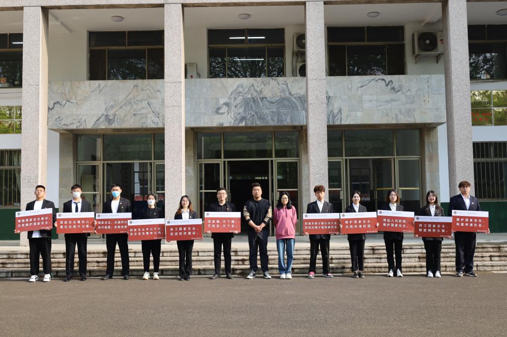 活动结束后,党员同志们在学校的各个角落以举牌的形式对国家安全进行积极宣传,用自身实际行动践行党员的先锋模范带头作用,为同学们做出具体表率。