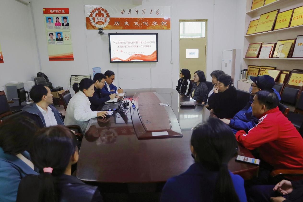 4月27日下午,快猫视频 教职工党支部于文史楼204开展学习贯彻习近平新时代中国特色社会主义思想主题教育工作会议暨第一次学习研讨。会议由党支部副书记刘国燕主持,教职工党支部全体党员参加会议。