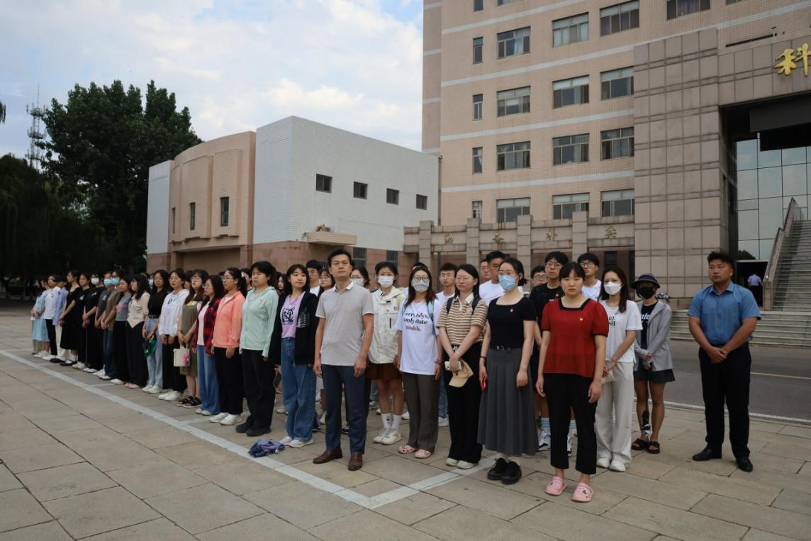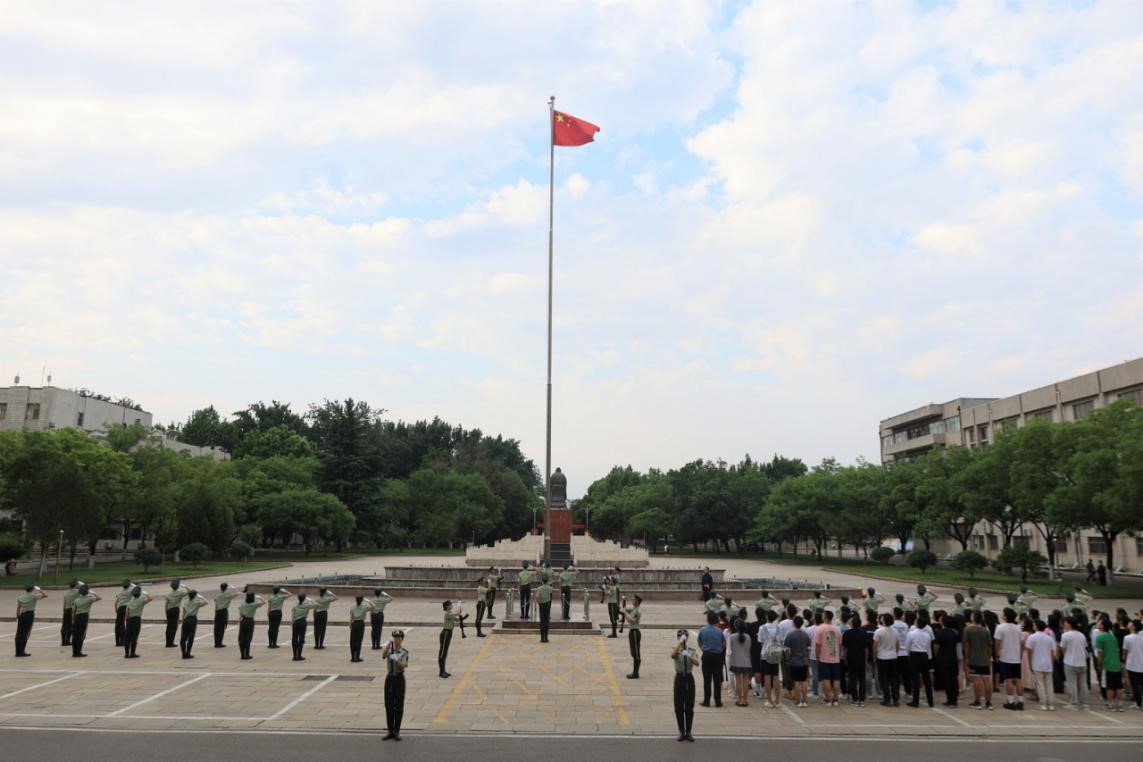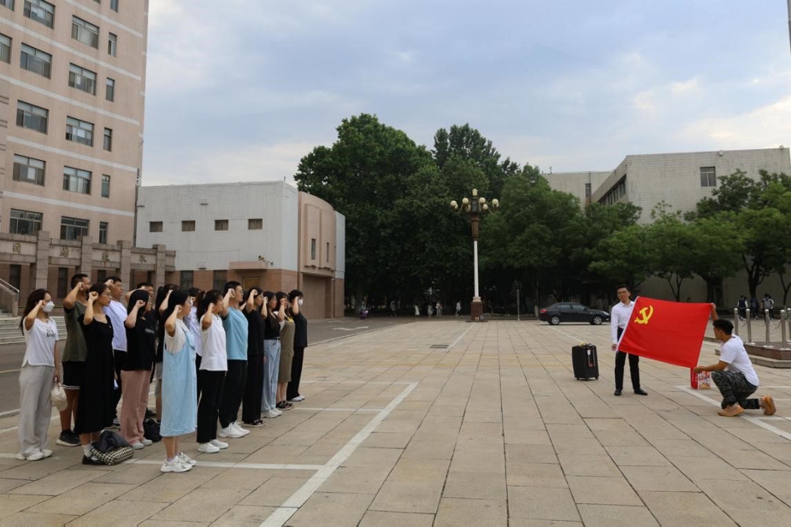 2023年6月12日上午,快猫视频 本科生党支部和研究生党支部于学校科技楼前开展重温入党誓词活动暨毕业生党员“七个一”系列活动——观看升旗仪式。本科生党支部和研究生党支部全体毕业生党员参加此次活动。