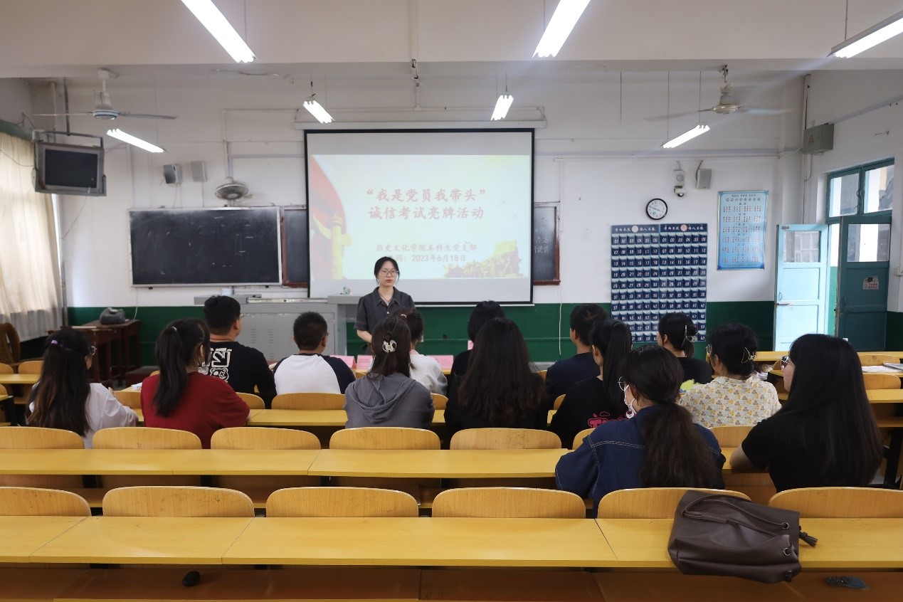 2023年6月18日下午,快猫视频 本科生党支部于文史楼411召开六月份主题党日活动暨“我是党员我带头”诚信考试亮牌活动,本科生党支部全体在校党员参加。