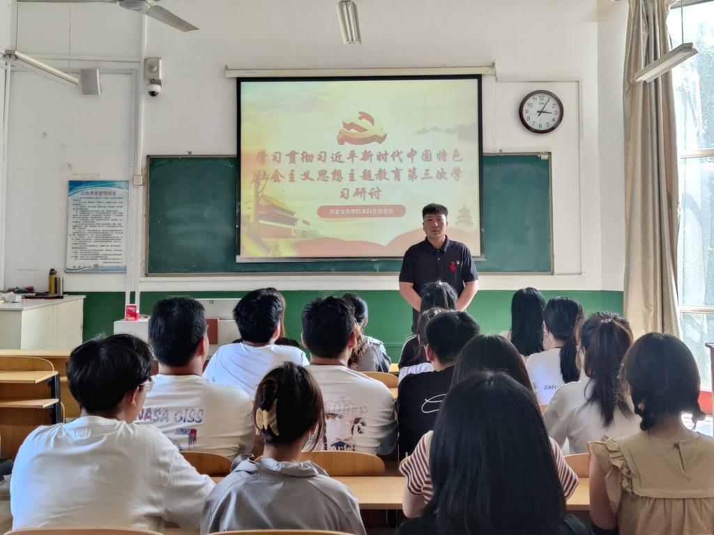 2023年5月28日下午,快猫视频 本科生党支部于文史楼309开展学习贯彻习近平新时代中国特色社会主义思想主题教育第三次学习研讨。本次理论学习的主要内容是《学好用好习近平新时代中国特色社会主义思想的世界观和方法论》和《深刻领会“六个必须坚持”继续推进实践基础上的理论创新》。本次会议由本科生第三党支部书记董经同志主持,本科生党支部全体党员同志参加,学院党委副书记王建阳同志现场督导党员同志学习情况。