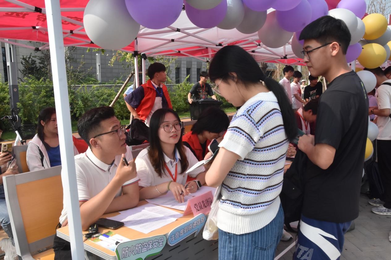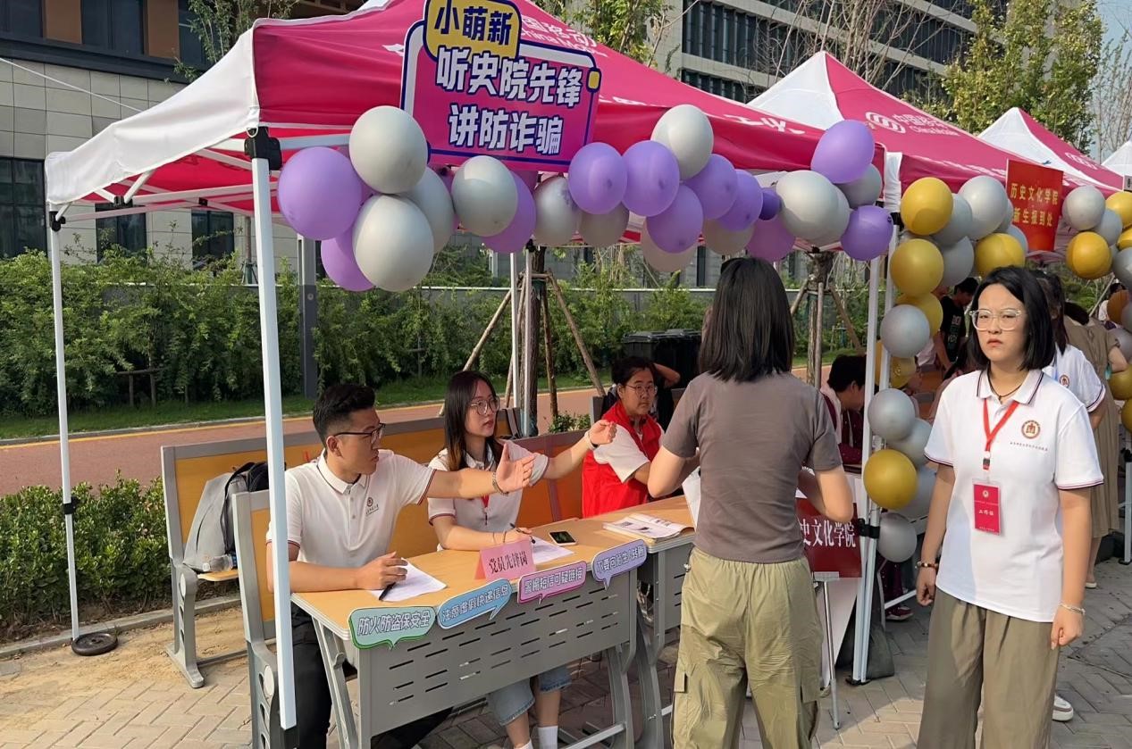 2023年9月9日,快猫视频 本科生第一、二、三党支部在新生报到点联合开展九月份主题党日活动——史院先锋讲防诈骗。党支部通过设置史院先锋岗的形式,向新生们普及安全知识和防诈骗知识,做好入校第一站的安全教育。