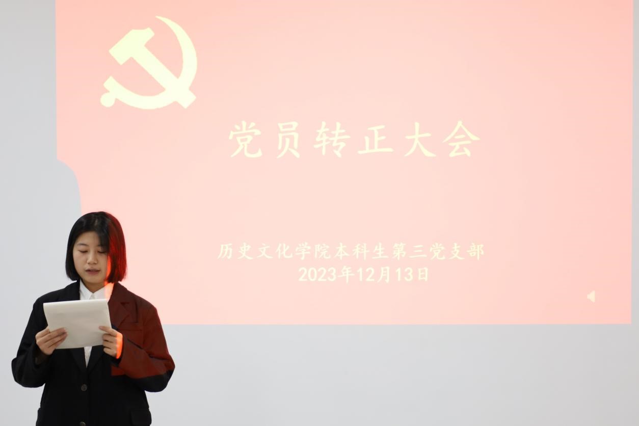 随后由本科生第三党支部书记董经同志介绍王子涵、许昭涵等9名同志的基本情况,宣布转正大会正式开始。