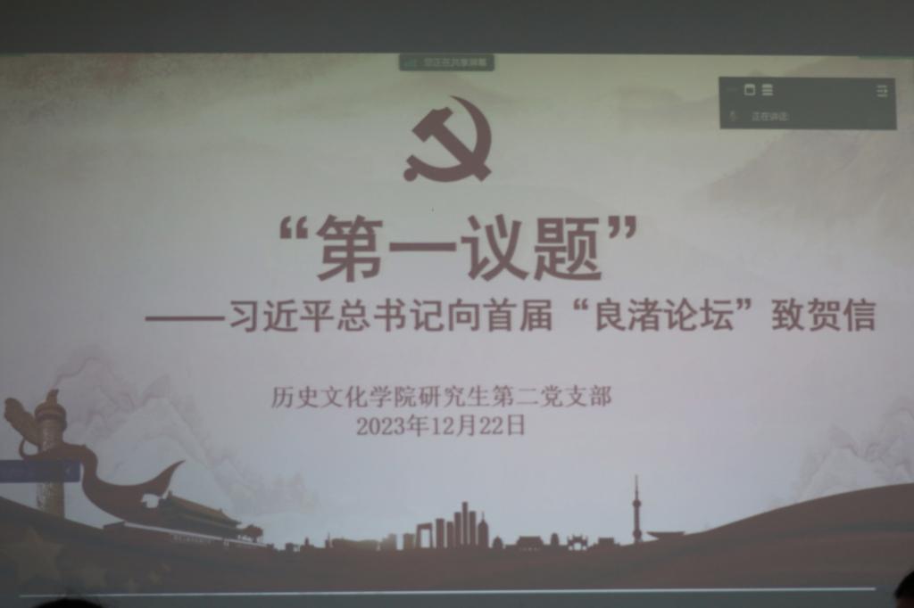 会议开始前,全体与会党员共同开展第一议题学习,学习习近平总书记向首届“良渚论坛”致贺信相关报道。习近平总书记指出,良渚遗址是中华五千年文明史的实证,是世界文明的瑰宝。在悠远的历史长河中,中华文明以独树一帜的创新创造、一脉相承的坚持坚守,树立起一座座文明高峰。中华文明开放包容、兼收并蓄,不断丰富发展、历久弥新,不断吸取世界不同文明的精华,极大丰富了世界文明百花园。