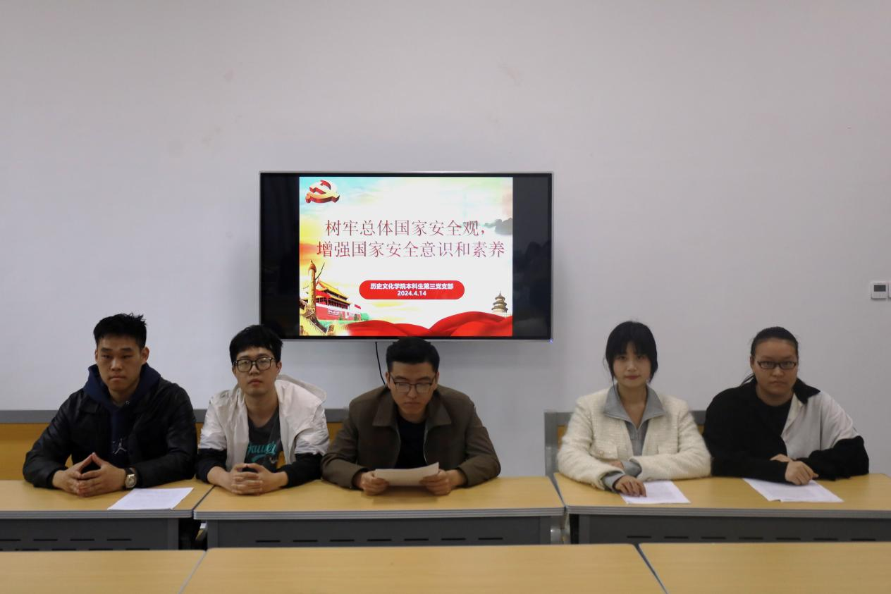 4月14日下午,快猫视频 本科生党支部于孔子书院B106开展“总体国家安全观·创新引领10周年”主题党日活动,本科生党支部全体党员参加。