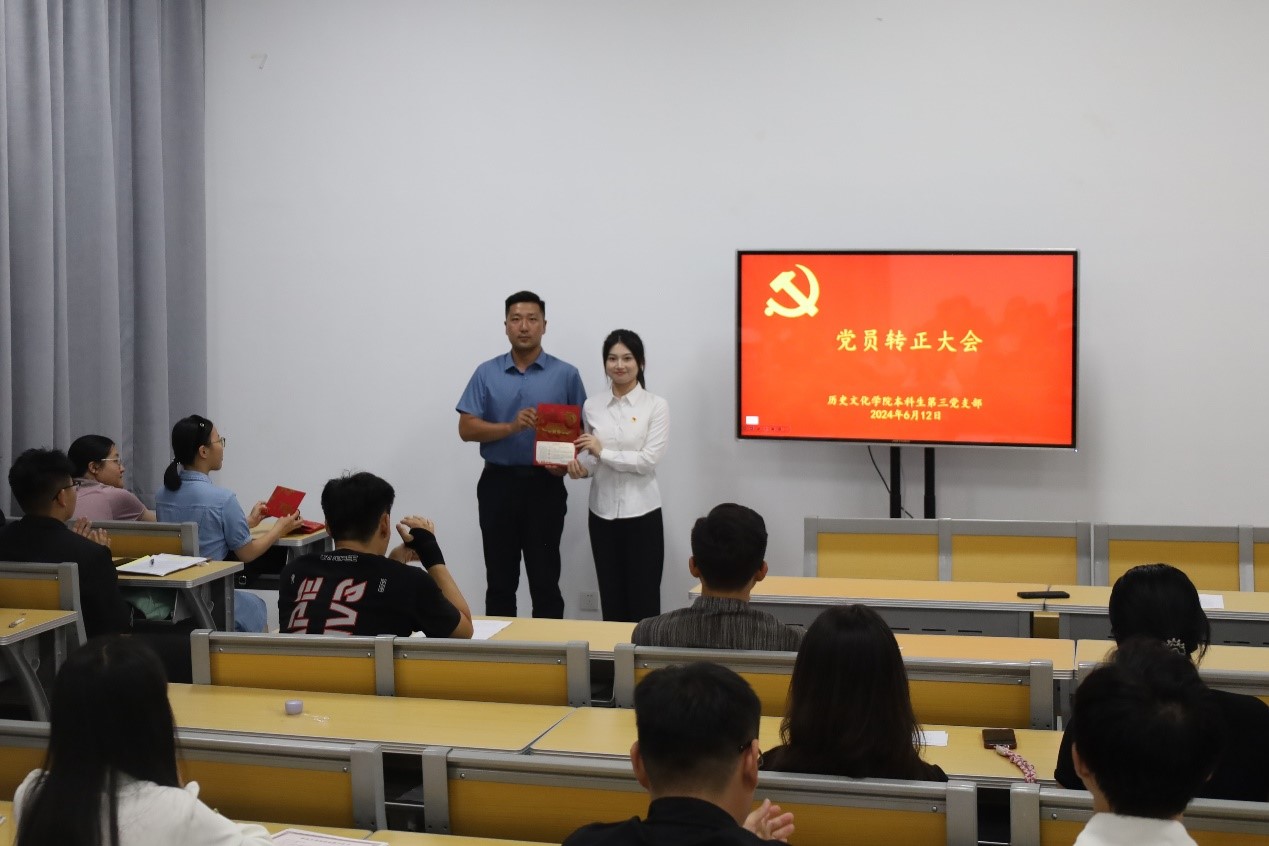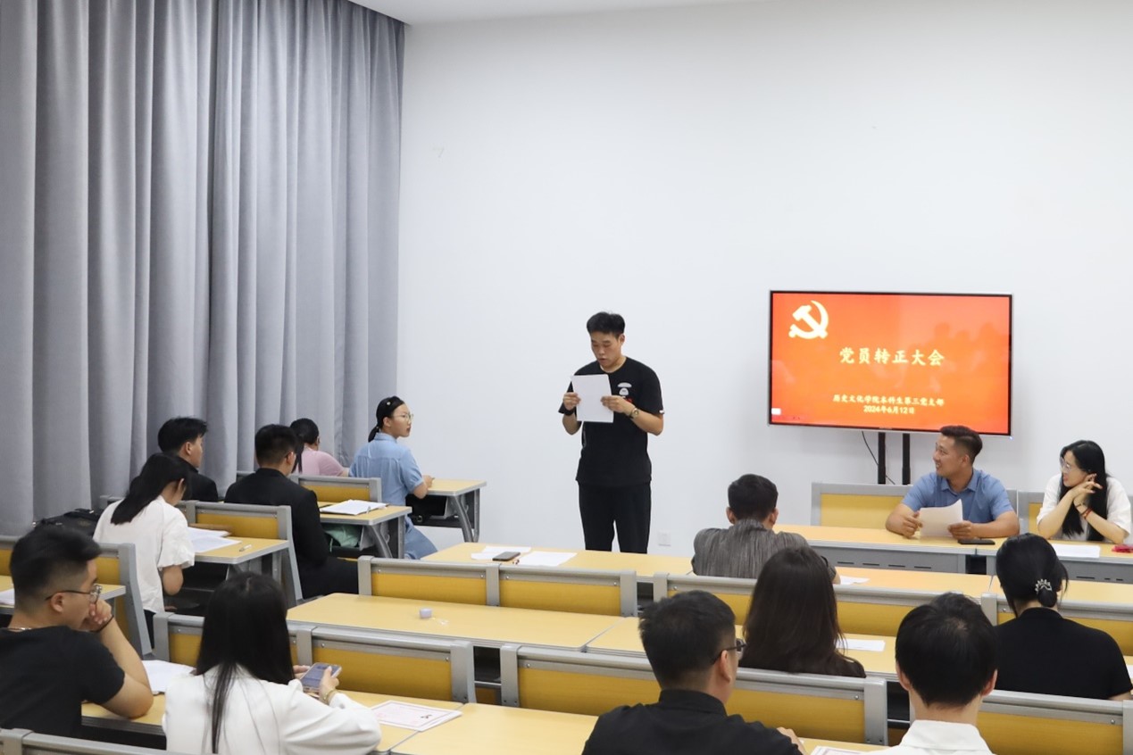 2024年6月12日,快猫视频 本科生第三党支部于孔子书院B106召开本科生第三党支部党员转正大会,讨论预备党员徐浩洋等10名同志转为正式党员的事宜。本次大会由快猫视频 本科生第三党支部书记董经同志主持,本科生第三党支部全体党员参加。