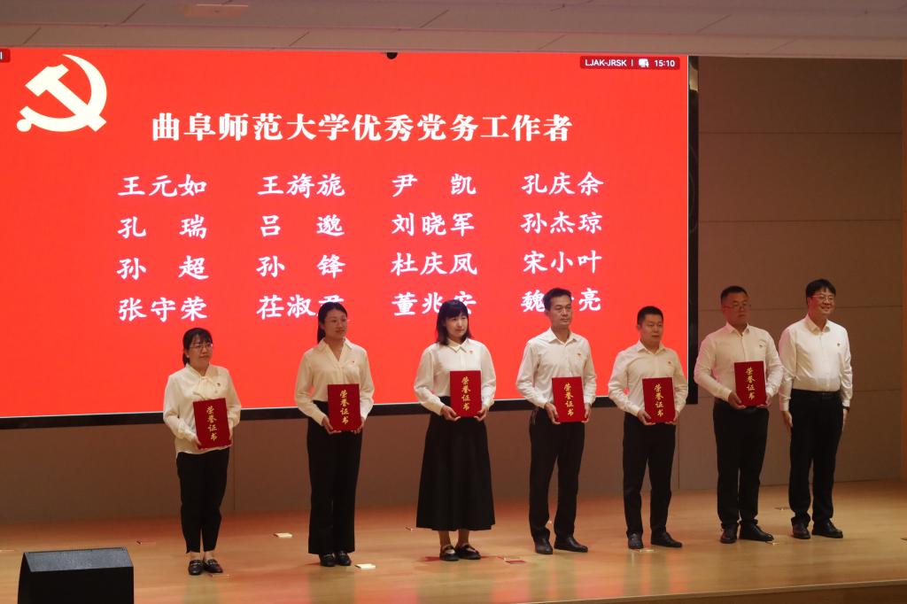 在学校表彰的先进基层党组织、优秀共产党员、优秀党务工作者中,快猫视频 研究生第一党支部荣获先进基层党组织称号,中国史教师党支部书记姜修宪同志荣获优秀共产党员称号,研究生第一党支部书记孙锋同志荣获优秀党务工作者称号。本次大会宣读了教工党员育人标兵、基层党务学用标兵、学生党员奋进标兵名单,教工党支部书记樊友猛同志被评为教工党员育人标兵,本科生第二党支部书记刘贤贤被评为基层党务学用标兵,原安同志、苏辰阳同志、杨素花同志被评为学生党员奋进标兵。