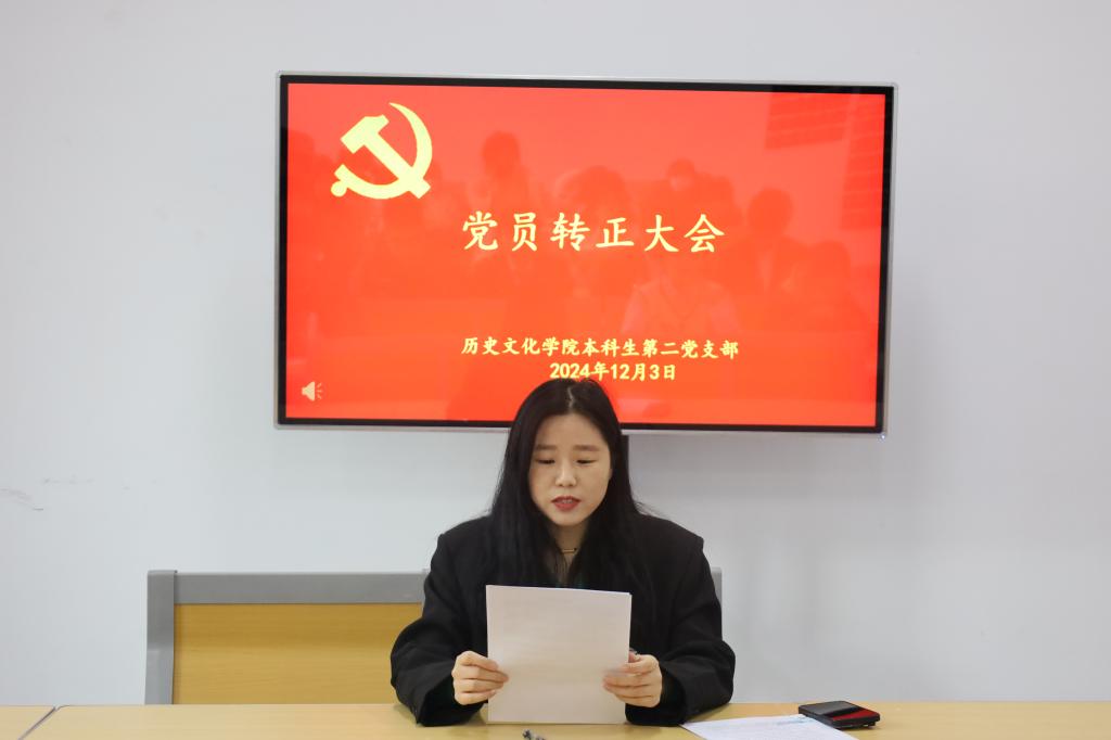 2024年12月3日,快猫视频 本科生第二党支部于孔子学院B106召开党员转正大会。本次大会由快猫视频 本科生第二党支部书记刘贤贤老师主持,快猫视频 党委组织员董经同志列席 ,本科生第二党支部全体党员参加会议。本次会议通过了预备党员胡冯淼等3位同志关于转正的决议。