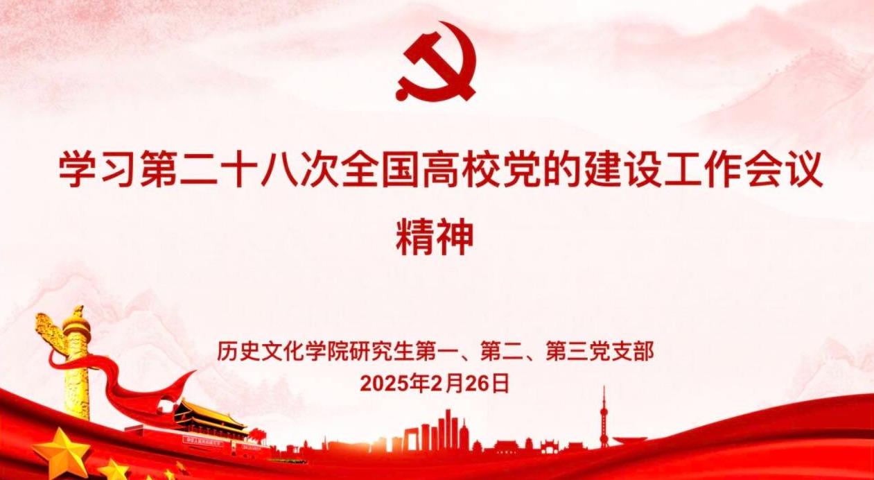 2025年2月26日下午,快猫视频 研究生第一、二、三党支部在孔子书院B106教室联合开展了2月份主题党日活动。本次主题党日活动的内容是学习“习近平文化思想”和“全国第二十八次高校党的建设工作会议精神”。活动由研究生第一党支部书记孙锋主持,研究生第二党支部纪检委员杨紫依领学。全体党员六十余人通过线上线下相结合的方式参与了本次活动。