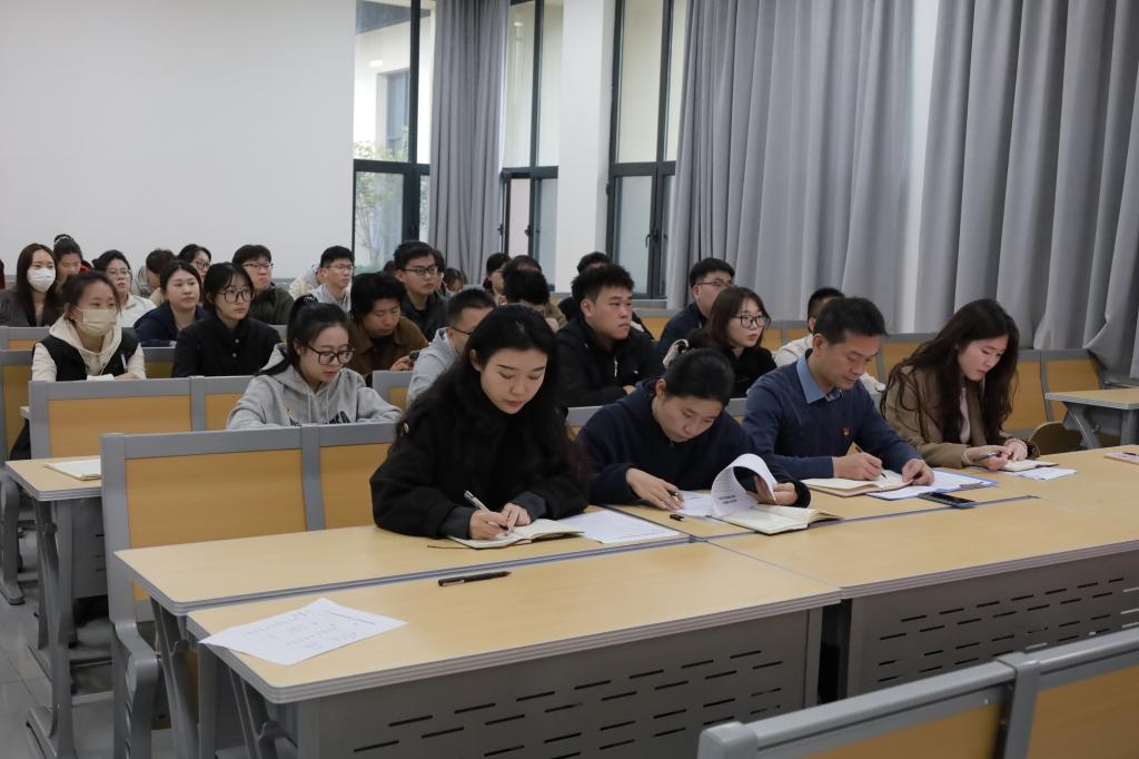 本次主题党日活动的主题是“学习贯彻党的二十届四中全会精神”,由研究生第二党支部邹雅琳同志领学。10月20日至23日,党的二十届四中全会在北京召开,全会听取和讨论了习近平受中央政治局委托所作的工作报告,审议通过了《中共中央关于制定国民经济和社会发展第十五个五年规划的建议》。全会指出,“十五五”时期是基本实现社会主义现代化的关键时期。“十五五”时期经济社会发展必须坚持马克思列宁主义、毛泽东思想、邓小平理论、“三个代表”重要思想、科学发展观,全面贯彻习近平新时代中国特色社会主义思想,深入贯彻党的二十大和二十届历次全会精神。必须遵循以下原则:坚持党的全面领导,坚持人民至上,坚持高质量发展,坚持全面深化改革,坚持有效市场和有为政府相结合,坚持统筹发展和安全。经济社会发展的主要目标:高质量发展取得显著成效,科技自立自强水平大幅提高,进一步全面深化改革取得新突破,社会文明程度明显提升,人民生活品质不断提高,美丽中国建设取得新的重大进展,国家安全屏障更加巩固。在此基础上再奋斗五年,到二〇三五年实现我国经济实力、科技实力、国防实力、综合国力和国际影响力大幅跃升,人均国内生产总值达到中等发达国家水平,人民生活更加幸福美好,基本实现社会主义现代化。全会号召,全党全军全国各族人民要更加紧密地团结在以习近平同志为核心的党中央周围,为基本实现社会主义现代化而共同奋斗,不断开创以中国式现代化全面推进强国建设、民族复兴伟业新局面。