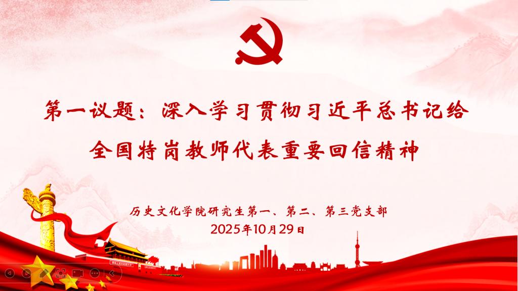 2025年10月29日下午,快猫视频 研究生第一、第二、第三党支部在孔子书院B106教室联合开展10月份主题党日活动,研究生党支部全体党员通过线上线下相结合的方式参加会议。会议由研究生第一党支部书记孙锋主持。