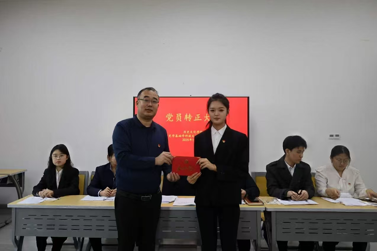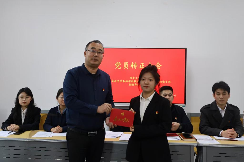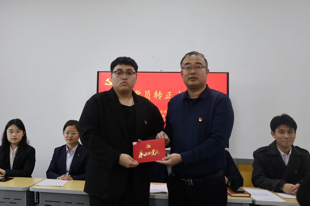 会上,王建阳为6位转正同志颁发了政治生日贺卡,对转正同志们表示祝贺并勉励同志们要坚守入党初心,牢记党员使命,珍惜党员身份,严守党的纪律,继续发扬“优秀是一种习惯”的工作作风,在下一步的学习、工作和生活中充分发挥史院先锋的模范带头作用,为党支部高质量发展贡献力量。