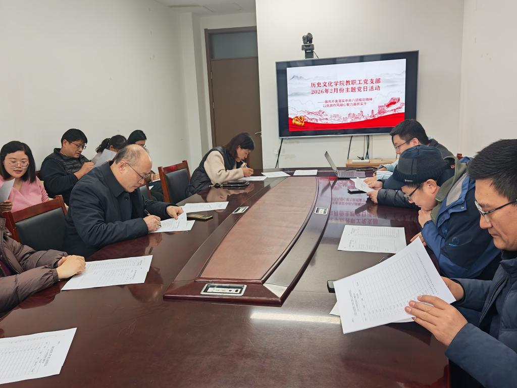 2026年2月28日,快猫视频 教职工党支部于孔子书院B230会议室开展了二月份主题党日活动。本次党日活动主题为“深学细悟会议精神,践行正确政绩观”。会议由党支部书记樊友猛同志主持,教职工党支部全体党员参加会议。