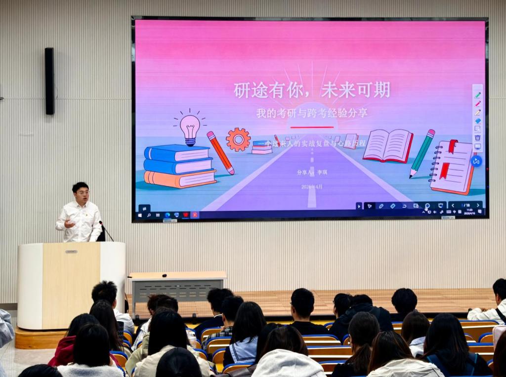 活动开始前,与会党员和参会同学集体学习了《求是》杂志2026年第5期《习近平:让愿担当、敢担当、善担当蔚然成风》文章。高凯月同志以《学习保研政策,做好保研准备》为题,从保研政策解读、科学系统备考等方面系统介绍了推免保研的准备情况。李琪同志以《研途有你、未来可期——一个过来人的实战复盘与心路历程》为题,从专业选择、院校定位等方面系统介绍了跨专业考研的准备情况。党支部副书记、班级辅导员闫浩做总结点评,希望同学们珍惜学习机会,系统科学复习备考,提前做好学业规划,用实际行动度过更加充实且有意义的大学生活。