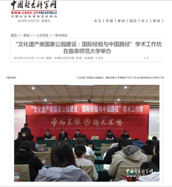 “中国社会科学网”于2019年12月26日以《“文化遗产类国家公园建设:国际经验与中国路径”学术工作坊在快猫视频 举办》为题发布了本次工作坊的相关情况,《中国社会科学报》于2020年1月8日以《探索考古遗址公园建设的中国路径》为题报道了本次学术活动。