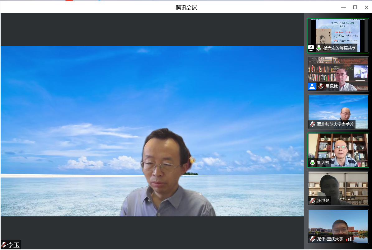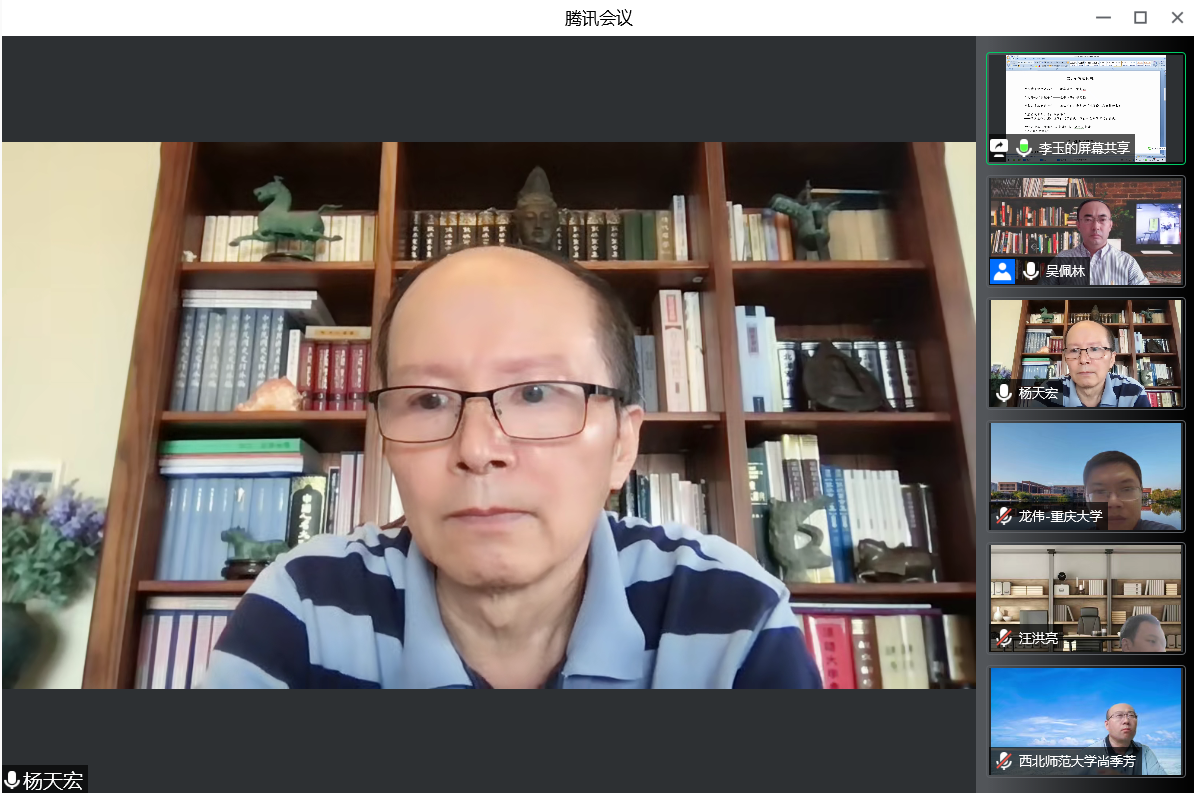 讲座最后,李玉、汪洪亮、龙伟、尚季芳、刘贤五位与谈人分享了自己对读书方法的认识。在提问互动环节中,杨教授就“如何有效率地掌握史学的资料以及书籍中的大概内容,以便于在研究问题和写论文的时候可以运用”“史学的书评机制的建议”等问题一一解答。最后,吴佩林院长再次对杨天宏教授的精彩讲座和五位评议人的分享表示感谢,并要求学院学生利用暑假至少精读一本专著或一种史料。各位老师同学也在腾讯会议中进行了合影留念。本次讲座在快猫视频 师生之间反响热烈,同时也得到了校外学者与同学的一致好评。