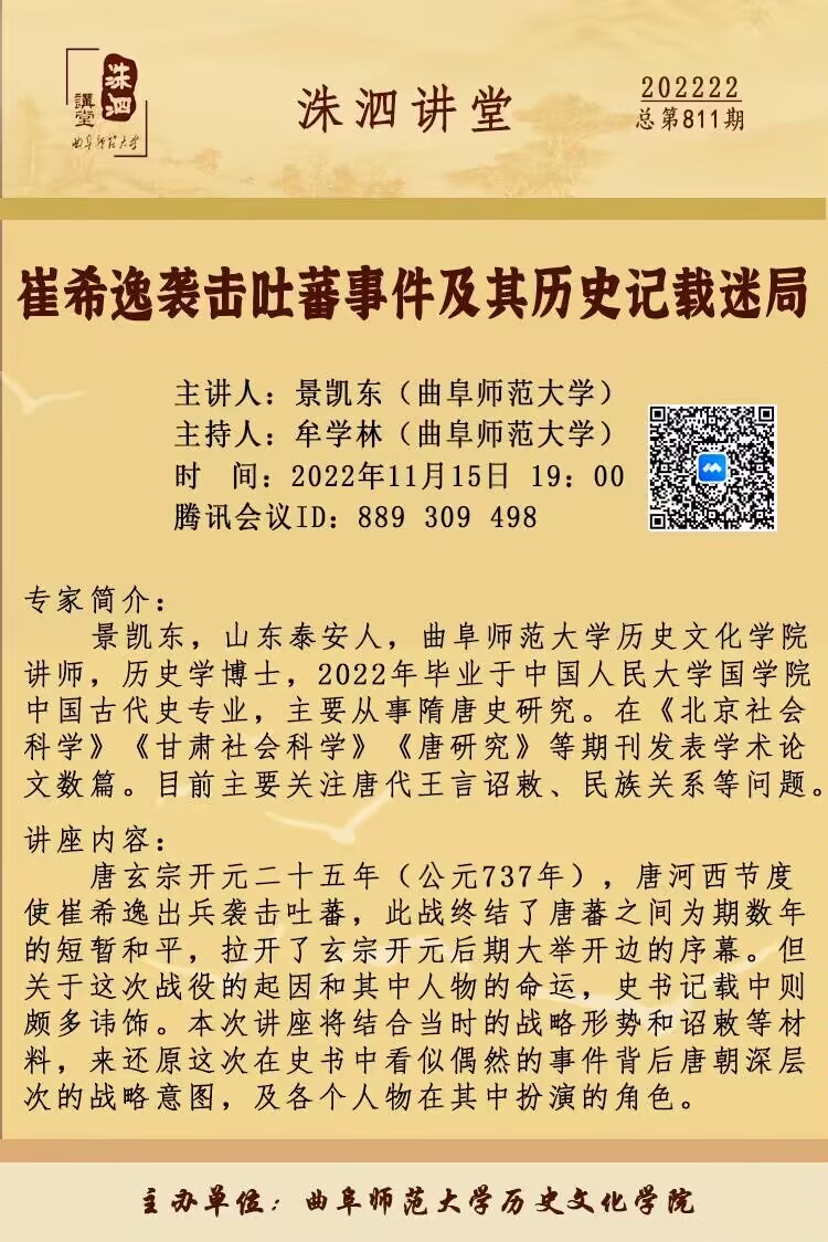 洙泗讲堂预告 |景凯东 :崔希逸袭击吐蕃事件及其历史记载迷局
