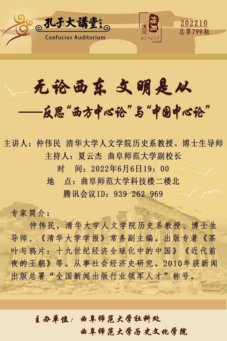 洙泗讲堂预告| 仲伟民:无论西东 文明是从——反思“西方中心论”与“中国中心论”