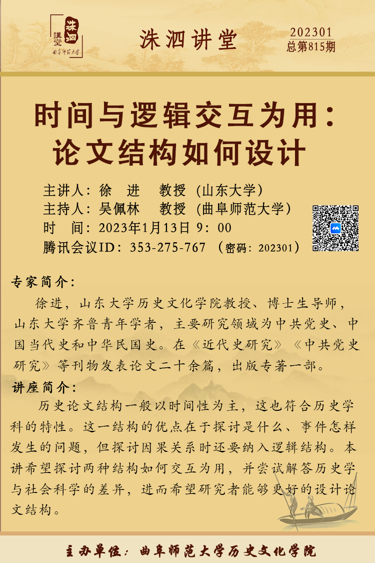 洙泗讲堂预告 | 徐进:时间与逻辑交互为用:论文结构如何设计