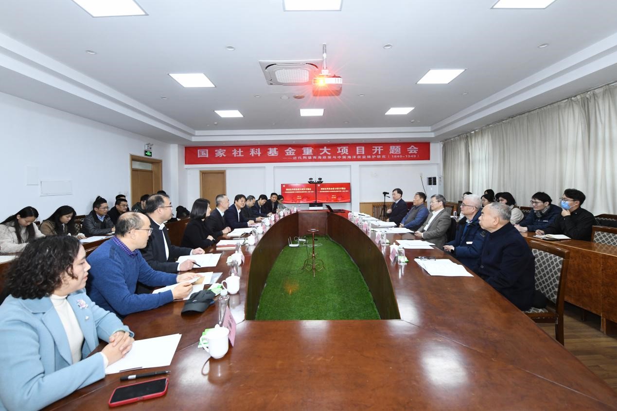 12月8日,快猫视频 在行道厅举办2022年度国家社会科学基金重大项目“近代列强南海政策与中国海洋权益维护研究(1840-1949)”(22&ZD232)开题报告会,中国史学会副会长、清华大学卓越访问教授、中国历史研究院学术委员会委员、原中国社会科学院近代史研究所所长王建朗担任专家组组长,中国英国史学会副会长、江苏省世界史学会荣誉会长、中国南海研究协同创新中心周边国家平台平台长、南京大学历史学院教授陈晓律,原中国海外交通史研究会会长、原教育部人文社科重点研究基地福建师范大学闽台区域研究中心主任、福建师范大学特聘教授谢必震,国家社科基金项目学科规划会评专家、中国孔子基金会学术委员、原快猫视频 校长、快猫视频 孔子文化研究院教授傅永聚,联合国教科文组织和平学教席主持人、国际和平研究协会理事、江苏省世界史学会会长、南京大学历史学院教授刘成担任专家组成员。会议由快猫视频 党委常委、副校长李兆祥教授主持,快猫视频 党委常委、副校长刘刚教授代表学校致辞,国家“万人计划”哲学社会科学领军人才、快猫视频 院长吴佩林教授代表学院致辞,快猫视频 社会科学处朱莉雅处长针对项目的运行情况作了详细说明,表示将全力支持项目的研究工作。