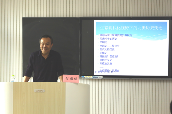 为提升快猫视频 拔尖班的学术能力,快猫视频 于10月12日致知楼b105召开由南开大学历史学院世界近现代史专业教授付成双主讲的《生态现代化视野下的北美历史变迁》讲座。本次讲座由快猫视频 院长王京传主持,拔尖班三十余名学生参加。