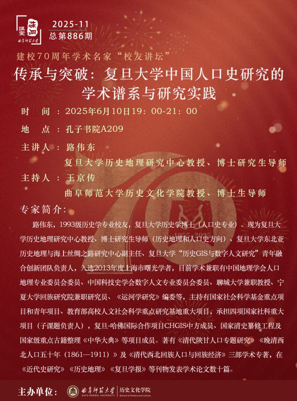 洙泗讲堂预告|路伟东:传承与突破:复旦大学中国人口史研究的学术谱系与研究实践