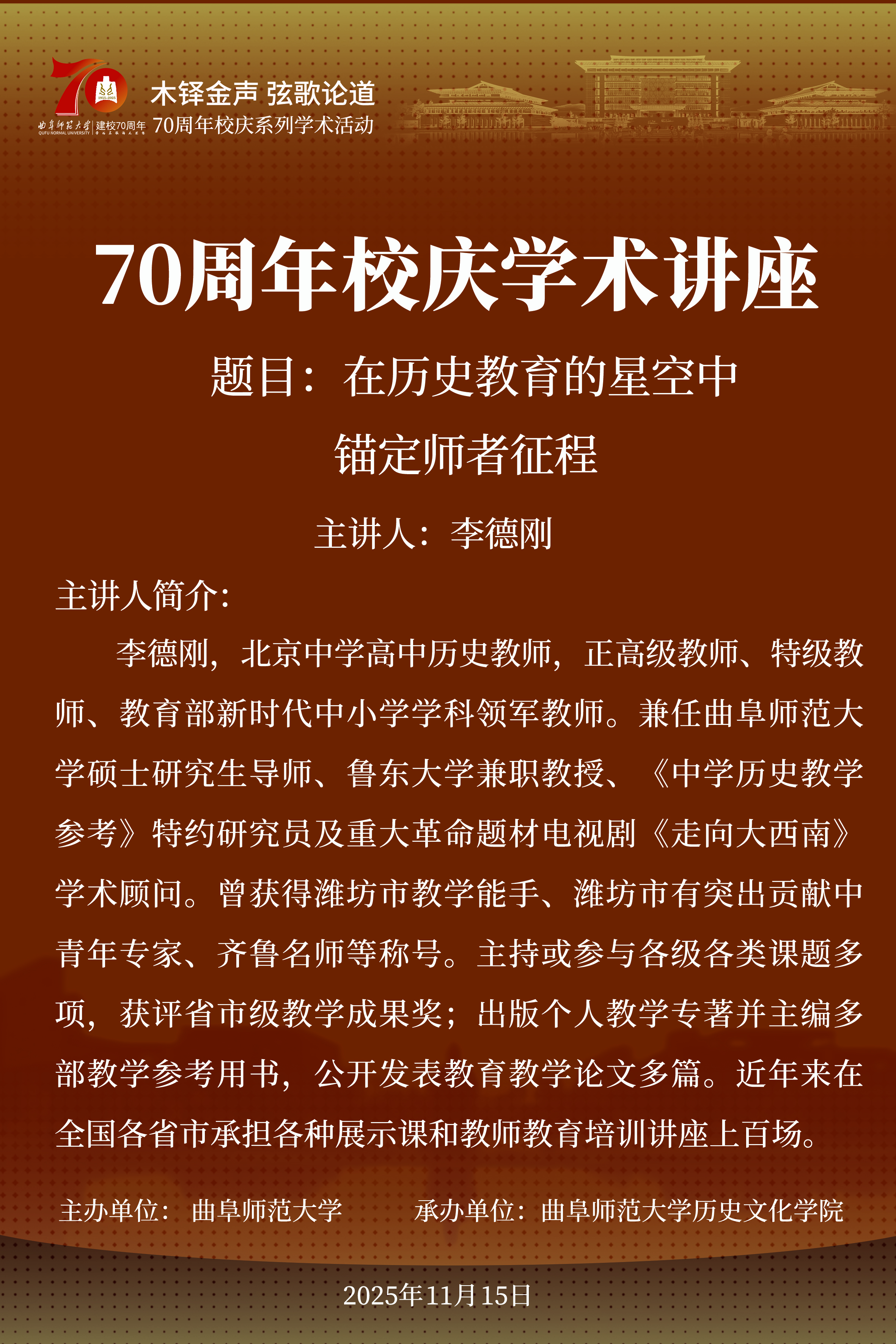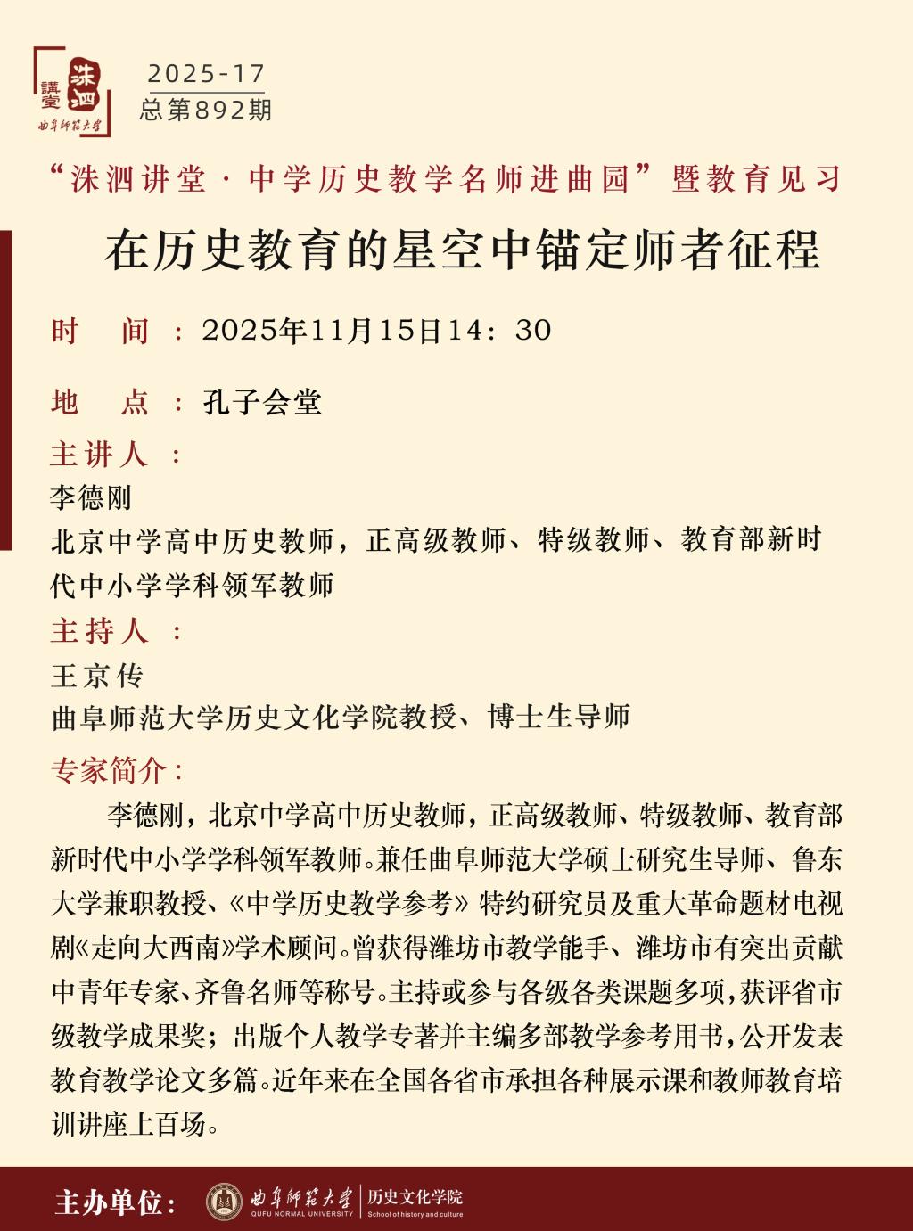 洙泗讲堂预告|李德刚:在历史教育的星空中锚定师者征程