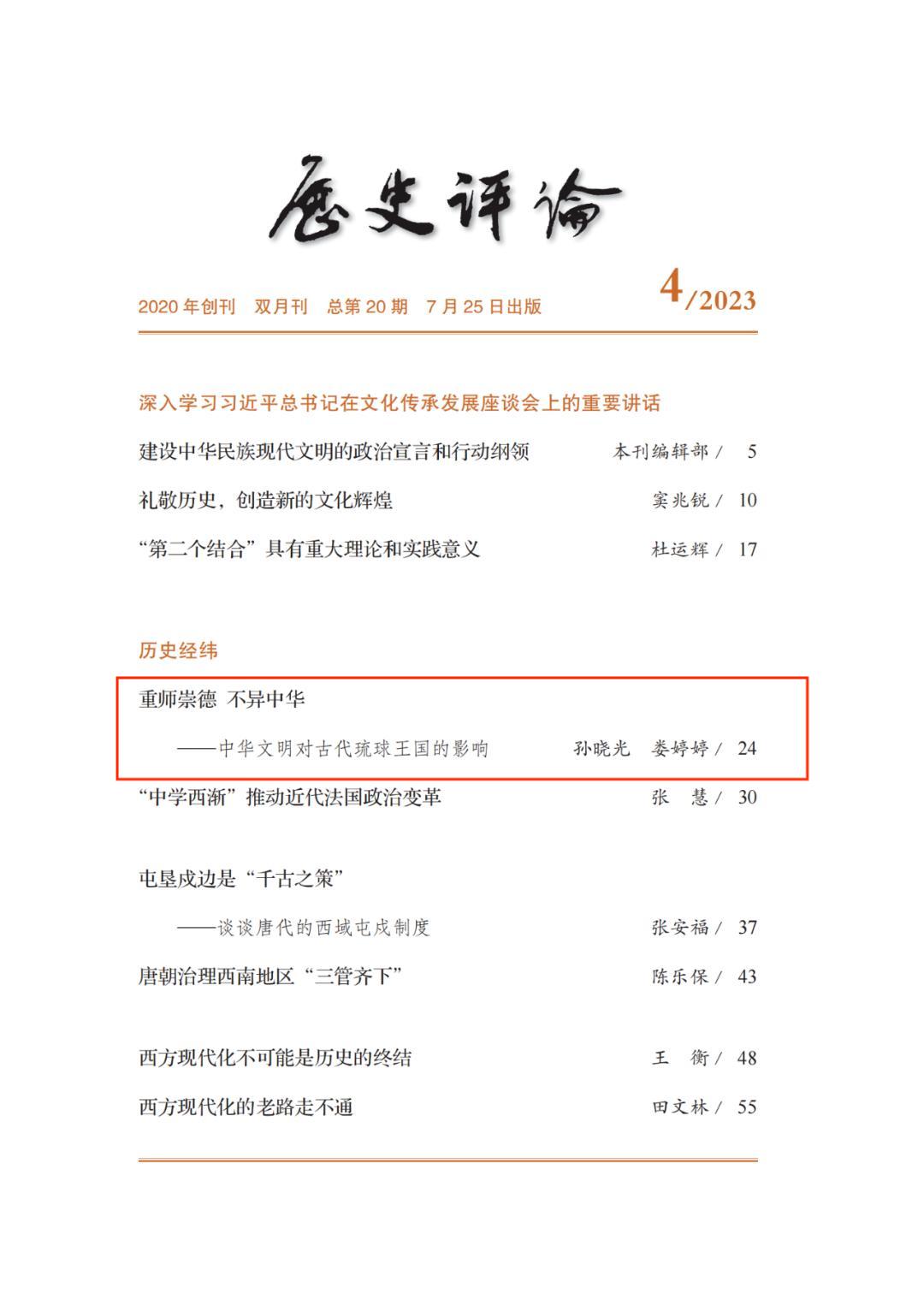 快猫视频 孙晓光教授在《历史评论》发表了《重师崇德 不异中华——中华文明对古代琉球王国的影响》一文。