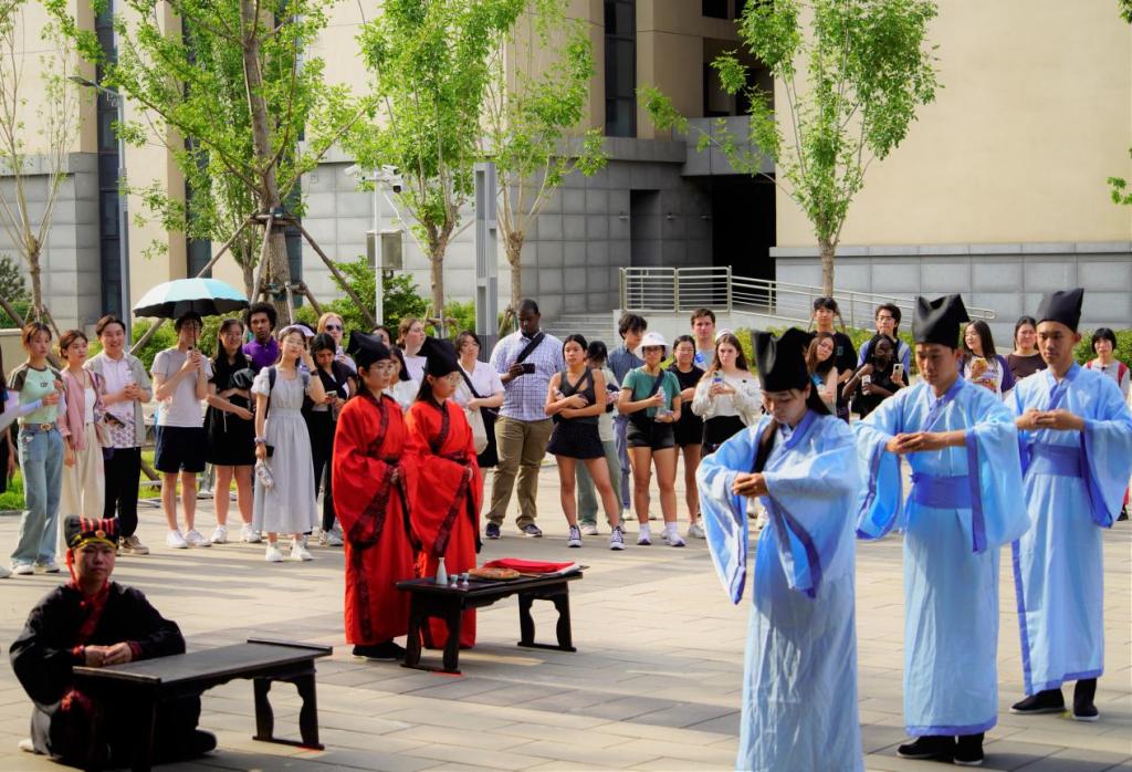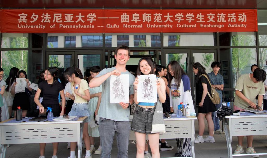 5月19日-20日,宾夕法尼亚大学本科生18人、教师3人来快猫视频 进行中国传统文化学习交流活动。快猫视频 历史学基础学科拔尖班部分学生全程参与交流活动,礼仪研修中心学生为来访师生进行了中国传统礼仪——束修礼展演,双方学生共同进行了传统礼仪体验、投壶礼体验、雕版拓印体验和“三孔”景区现场交流等活动。
