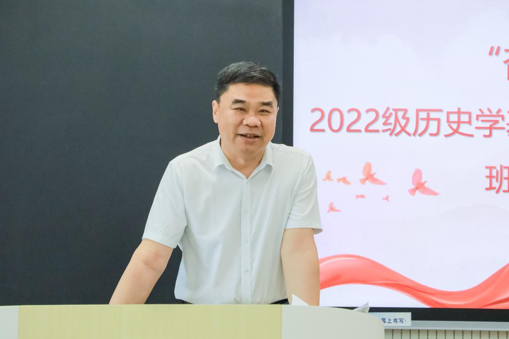 邢光在讲话中回顾了拔尖人才培养班的创立初心,表达了学校对拔尖人才培养的重视。他对同学们提出几点希望:一要树立远大理想,肩负历史使命。二要努力学习知识,练就过硬本领。三要强化创新思维,勇于创新创造。四要提升格局境界,实现人生价值。他希望同学们在史学研究的道路上踏实沉淀、行稳致远。