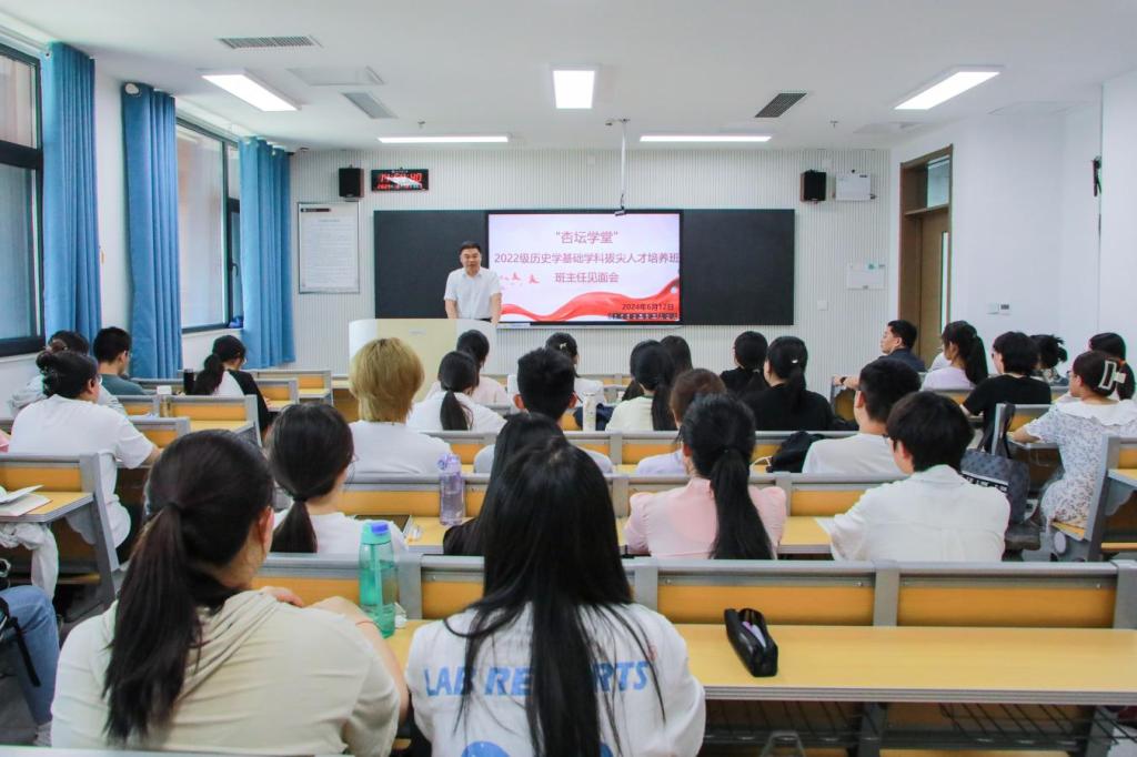 6月12日,快猫视频 “杏坛学堂”历史学基础学科拔尖人才培养班班主任见面会举行,学校党委书记邢光作为杏坛学堂”历史学基础学科拔尖人才2022级培养班班主任与拔尖班学生开展师生交流活动。学校教务处处长李傅山、快猫视频 党委书记姜开勇、党委副书记王建阳参加了会议。见面会由学院副院长王京传主持。