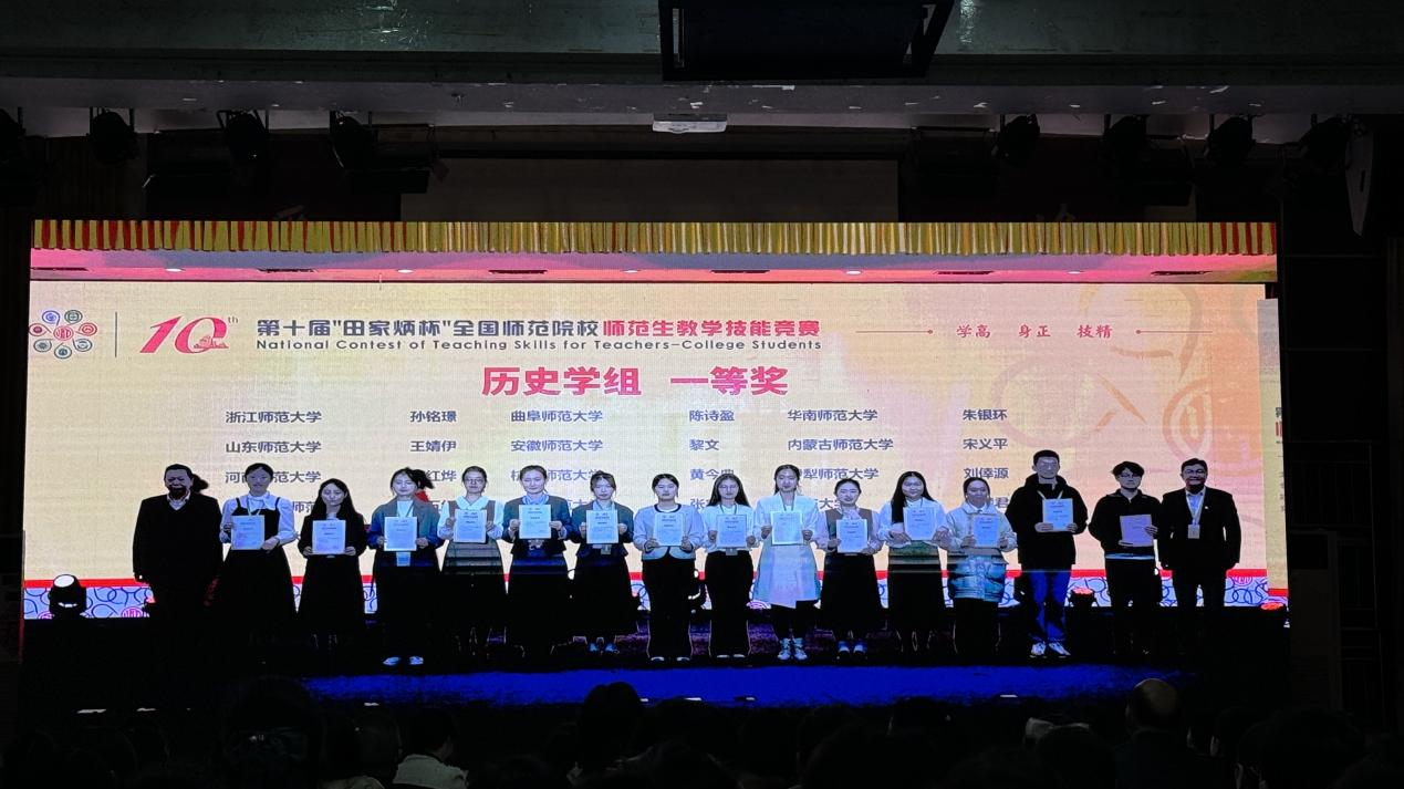 12月1日,第十届全国师范院校师范生教学技能竞赛决赛教学技能大赛决赛成功在浙江师范大学落下帷幕。本届比赛共有来自226所师范院校的1611名选手参加大赛,参赛院校首次突破200所,选手首次突破1000人,其中481名选手到现场参加决赛,最终角逐产生一等奖161名、二等奖320名,其中历史学科一等奖15名,二等奖30名。经过激烈角逐,快猫视频 2022级历史学(师范)陈诗盈获一等奖(指导老师:王京传、王刚、李德刚)。