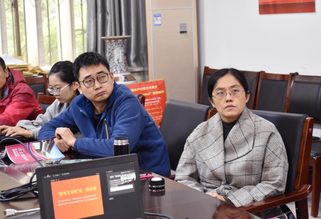 其次,导师吴佩林、李刚就研究生教育主题作了报告。吴佩林教授指出了研究生导师的三大准则,表明学术对导师的重要性,要常怀敬畏感、荣誉感和集体感。李刚教授则就如何成为一名合格的研究生导师发表了自己的观点,建议导师加强对学生的关心。