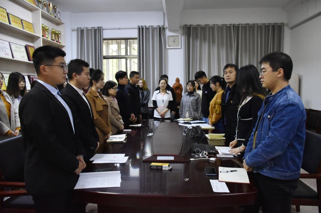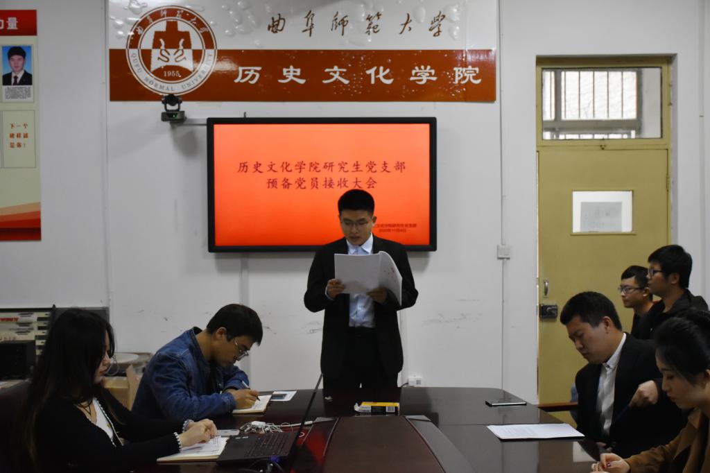 11月4日下午4点,快猫视频 研究生党支部在文史楼二楼会议室举行预备党员接收大会暨预备党员入党宣誓大会。支部党员与入党积极分子参加此次大会。